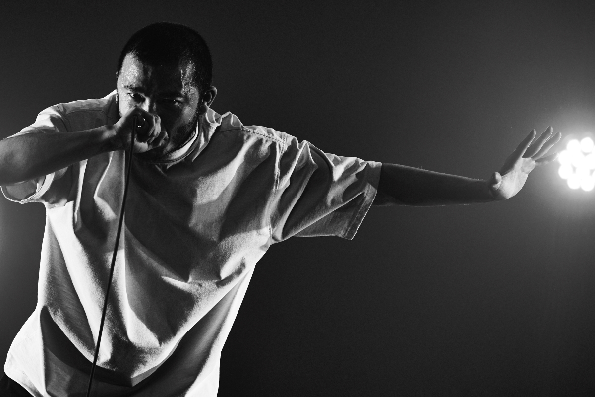 アフロが「俺たちのライブ、一緒に歌ったりとか、手拍子とか、ホントにないんで。ここで一発だけ、皆さんの声をもらっていいでしょうか? 乾杯の音頭を取るので。せーの!」と呼び掛け、フロアが「乾杯!」と返したのもつかの間、MCと地続きの物語で楽曲の世界に没入させたのは「革命」。SUPER BEAVERの熱狂とは打って変わった静寂の下、壮絶なリリックを浴び、その場に立ち尽くすオーディエンス……。