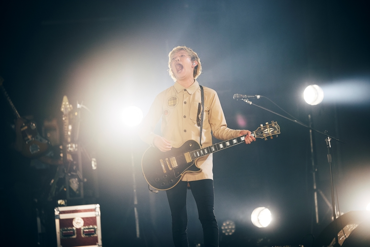 このバンドを信じて良かったと心底思える信頼感と安心感に満たされた「幸せのために生きているだけさ」、渋谷の「伝わってますか大阪!」との咆哮に、なんばHatchを包囲する最大級の「愛してる!」が応えた「アイラヴユー」、そして、「めちゃくちゃいいけど、どんどん更新したいんです。ジャンルとか世代とかどうでもいい。カッコいいヤツが一番強いんだよ」と突入した「東京流星群」では、そのいざないとイントロですでに鳥肌。有言実行でピークを超えていく、サビでの感情の爆発がもう最高!
