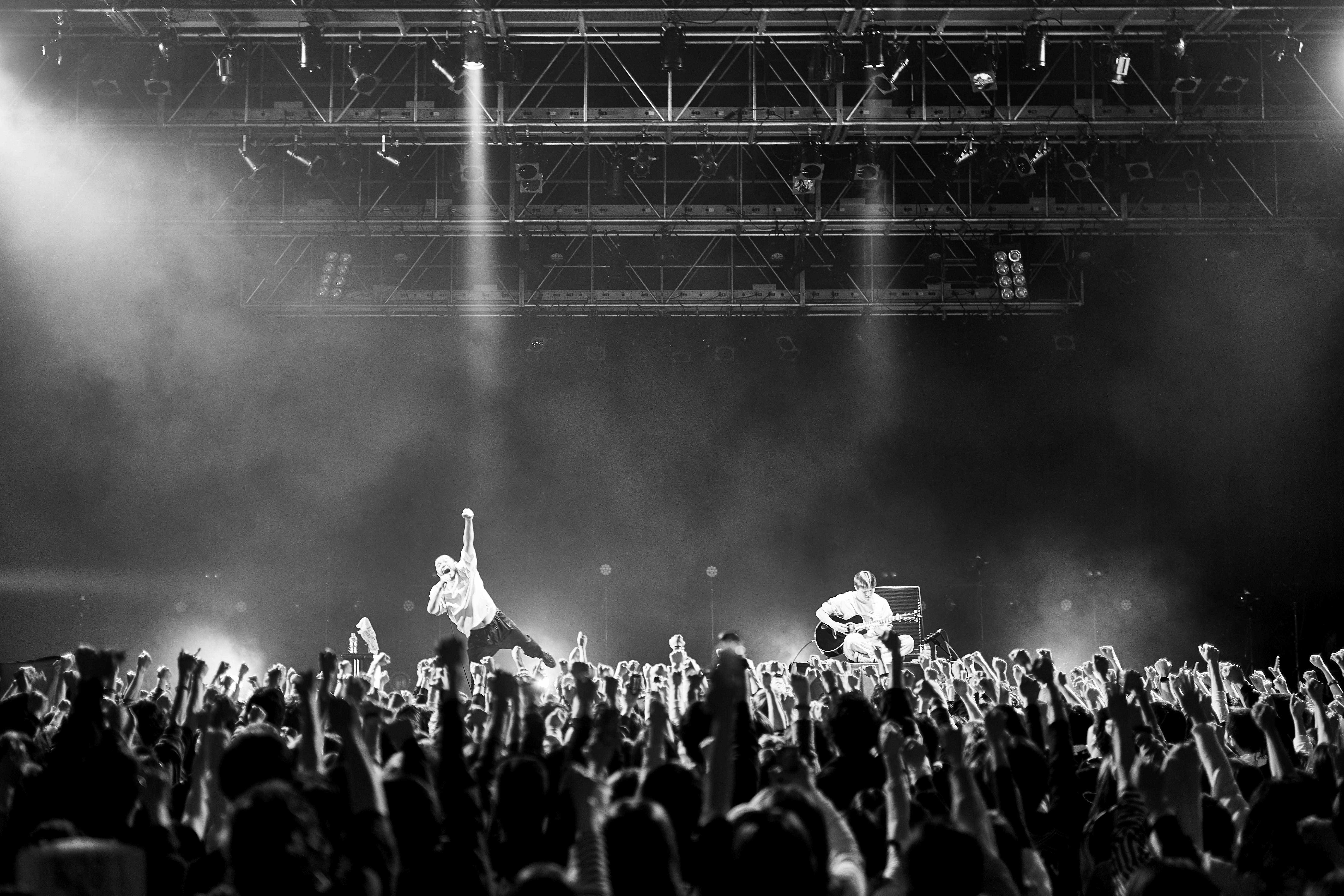渋谷もそのシンガロングに「完璧!」と太鼓判を押すムードのまま、「我々のマスターピース(=最新アルバム『音楽』)の幕開けを飾る一曲!」と、This is SUPER BEAVERなアンセム「切望」へ! このバンドはいったいどこまでロックの頂を這い上がっていくのか……もはや完全にワンマンライブな空気の中、すさまじいエネルギーを放出しながら一心不乱にクライマックスへと駆け抜けていく!