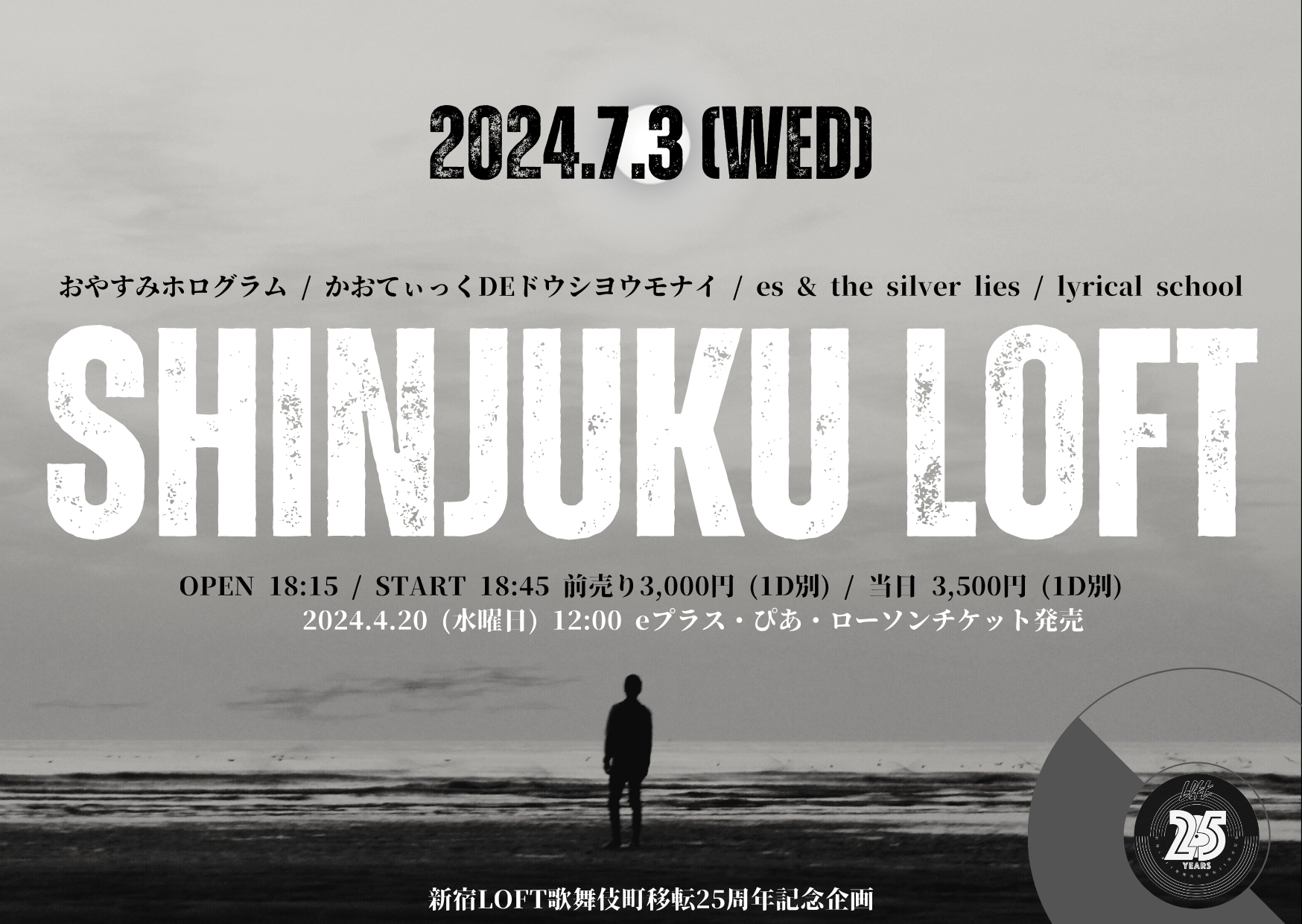 lyrical school、おやすみホログラム、かおてぃっくDEドウシヨウモナイ、es & the silver liesら4組が出演するライブが、7月3日(水)に東京・新宿LOFTで開催されることがわかった。