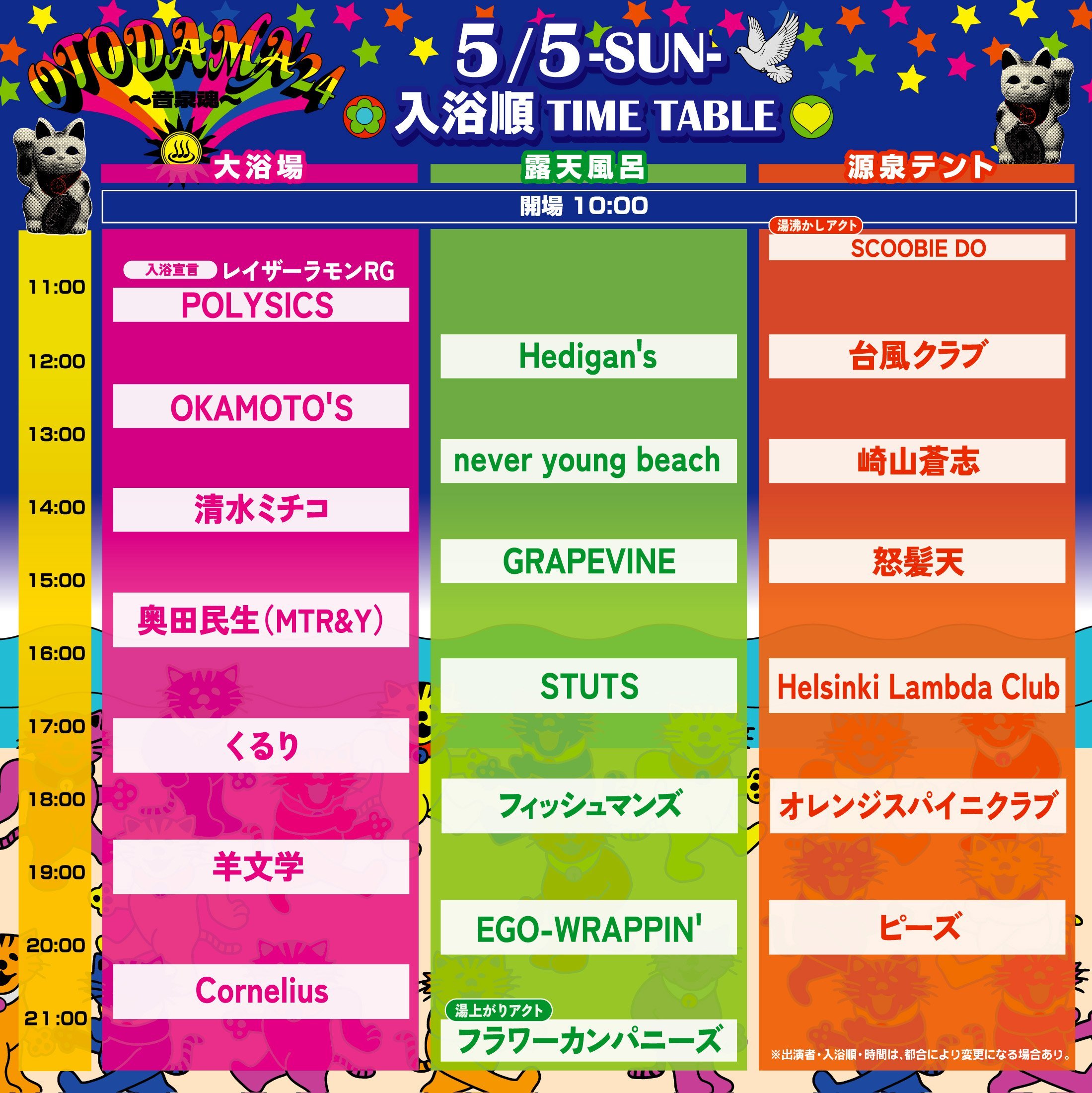 四星球は2017年にトリをやってもらった時に、「こんなのでトリを獲らせたと思うなよ!」と言われて(笑)。それもあったし、バンドとしてはフラワーカンパニーズに次ぐくらいに沢山出てくれているバンドなんで、うちらのこともよくわかってくれていますから。2日目のCorneliusは、小山田さんが僕と同世代で。キャリア的にもシンパシーを感じて、説得力のある方にお願いさせていただきました。奥田民生さんも同世代なんですけど、何回もトリを獲ってもらっているので。その後の湯上りアクトとして初日にキュウソネコカミ、2日目にフラカンがいてくれたらフルスイングができる。この振り幅だとアホちゃうかと思われるラインナップになったかと(笑)、舐められへんやろなと。そんな感じかな! 以上です!