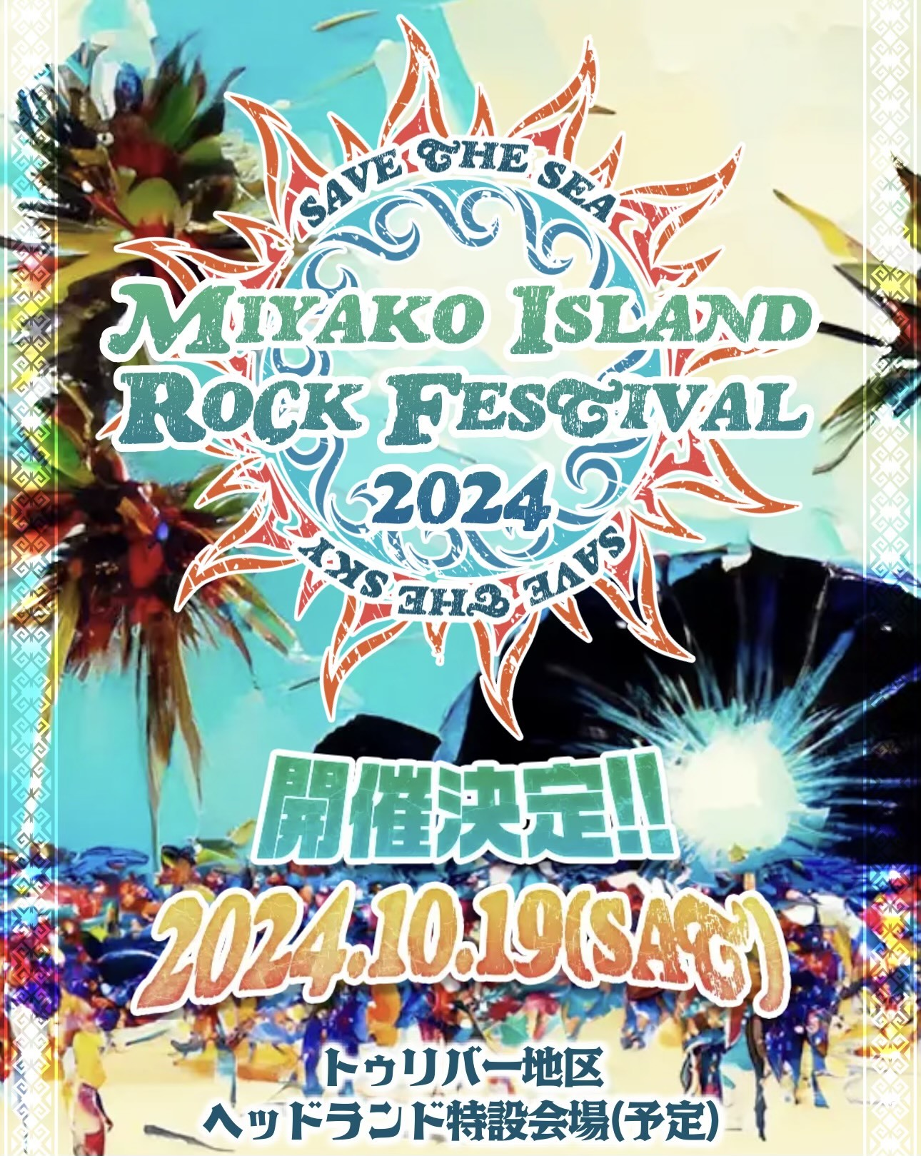 2024年10月19日(土)、沖縄県・宮古島コースタルリゾートヒララ トゥリバー地区 ヘッドランド特設会場(予定)にて、日本最南端のロックフェス『MIYAKO ISLAND ROCK FESTIVAL 2024』の開催が決定した。