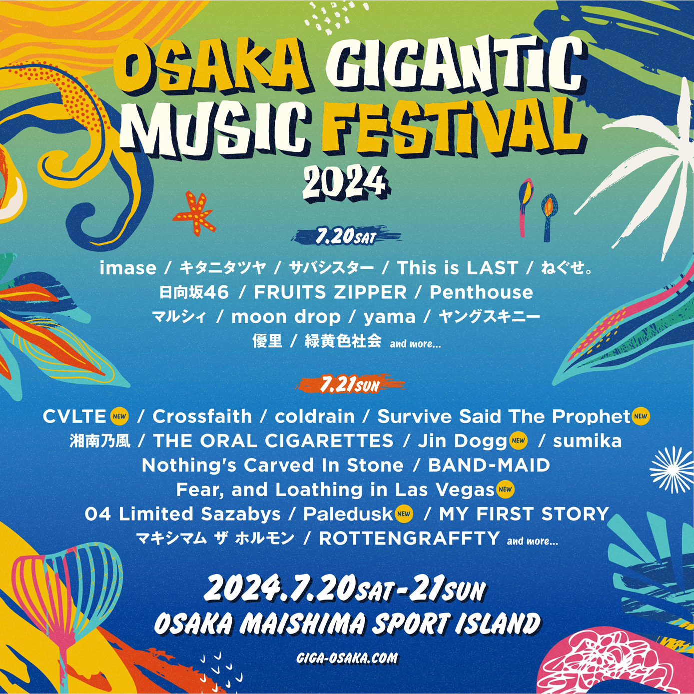 7月20日(土)、21日(日)に大阪・舞洲スポーツアイランド 特設会場にて開催される『OSAKA GIGANTIC MUSIC FESTIVAL 2024』に、CVLTE、Survive Said The Prophet、Jin Dogg、Fear, and Loathing in Las Vegas、Paleduskの出演が決定した。