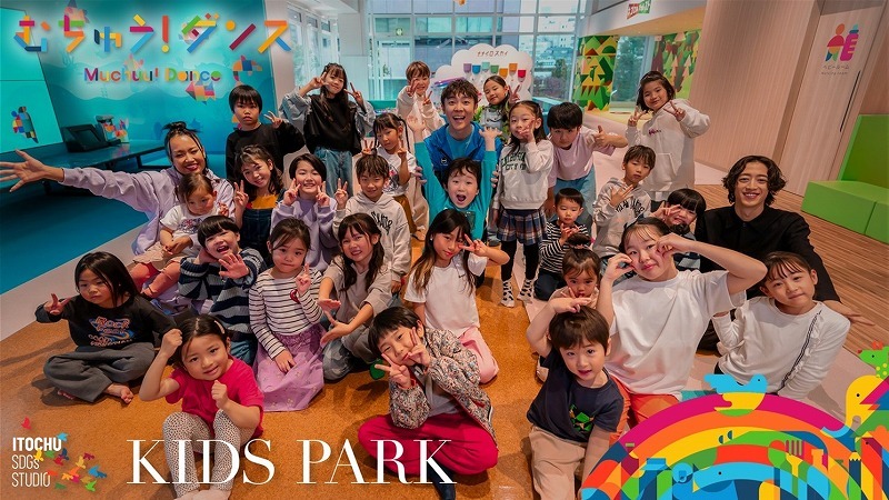 2022年7月の開設以来約12万人が来場しているITOCHU SDGs STUDIO KIDS PARK。今回の公式ダンスは、「さらに多くの方が楽しめるきっかけを作りたい」という考えから生まれたもの。振付にRIEHATA、実演に小林よしひさ、楽曲製作に角野隼斗(かてぃん)を迎え、思いっきり体を動かすことによる、こどもたちの運動機能の発達にも着目しているという。誰もが自然と踊りたくなるメロディで、小さな子どもから大人まで夢中になって、楽しむことができる。