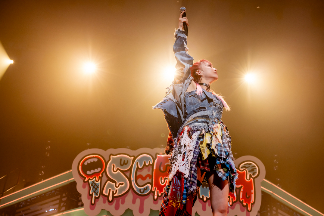 LiSAは、『LiVE is Smile Always~i SCREAM~』と題した公演で、2日間合わせて2万人を動員。2日目の通算11回目の武道館公演にあたる4月20日(土)には、ソロデビュー13周年を迎えた。会場は、今か今かとLiSAの登場を心待ちにする観客で見切れ席まで埋め尽くされていた。客席の照明が落ちると、会場はペンライトでピンク色に染まる。2024年の年間テーマ「ROUTE13」を彷彿とさせるような映像が流れると、観客は息を飲んでモニターを見つめる。さらに、アメリカン・ダイナーをベースにしたアイスクリーム・ショップがテーマのステージの全体が明らかになり、冒頭「LiTTLE DEViL PARADE」の一節を歌う子供のシーンから、LiSAがダンサーに囲まれてセット上に登場。「LOSER」「ROCK-mode’18」を歌いこなし「今日という、大切な大切な記念日を叫び倒す準備はいいですか?」と声高らかに舞台の幕を開けた。