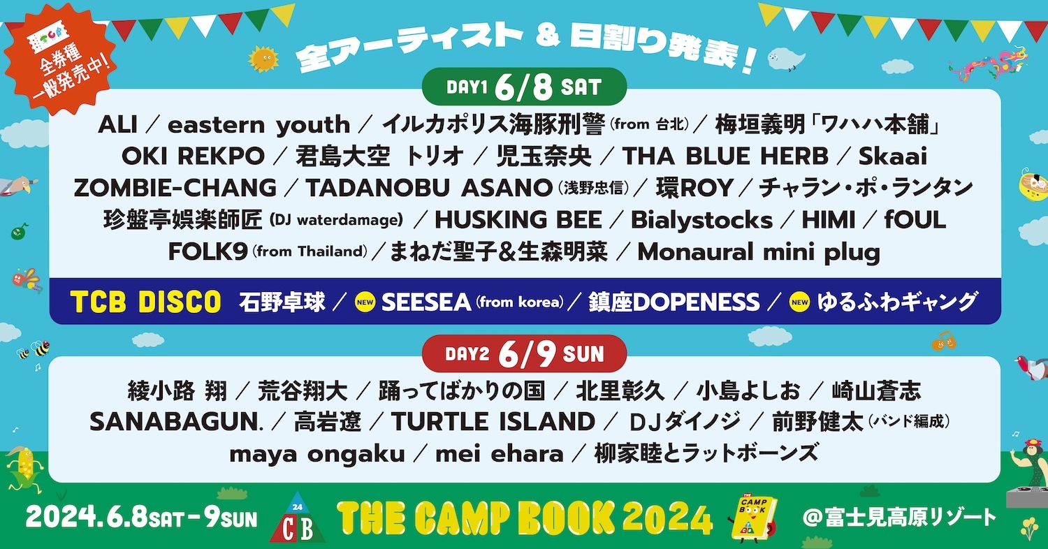 2024年6月8日(土)・9日(日)に富士見高原リゾートにて開催される『THE CAMP BOOK 2024』の最終第5弾出演アーティストが発表された。