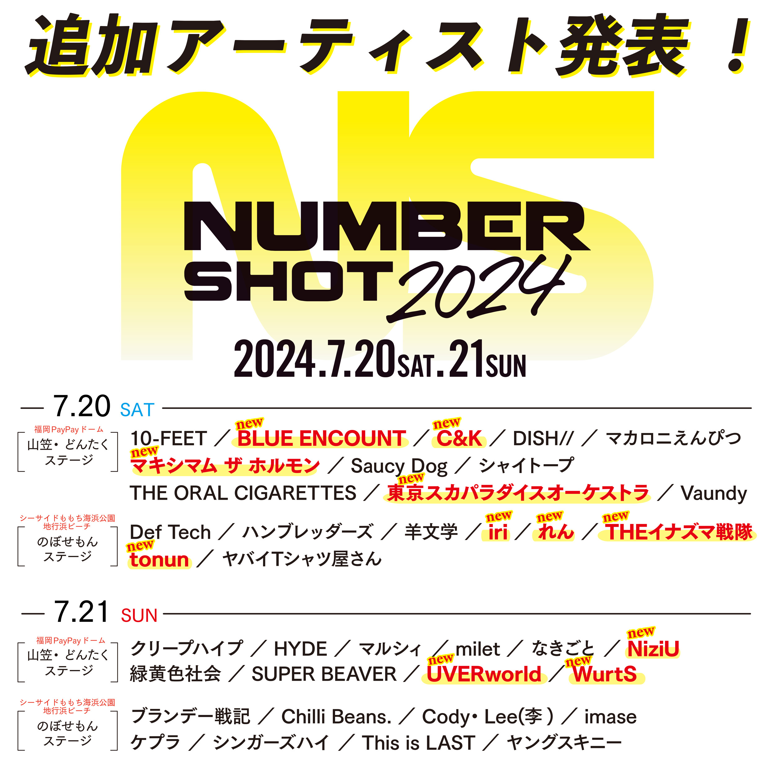 2024年7月20日(土)・21日(日)、みずほPayPayドーム福岡&シーサイドももち海浜公園地行浜ビーチにて開催される、九州最大級の夏フェス『NUMBER SHOT2024』の追加出演アーティストが発表された。