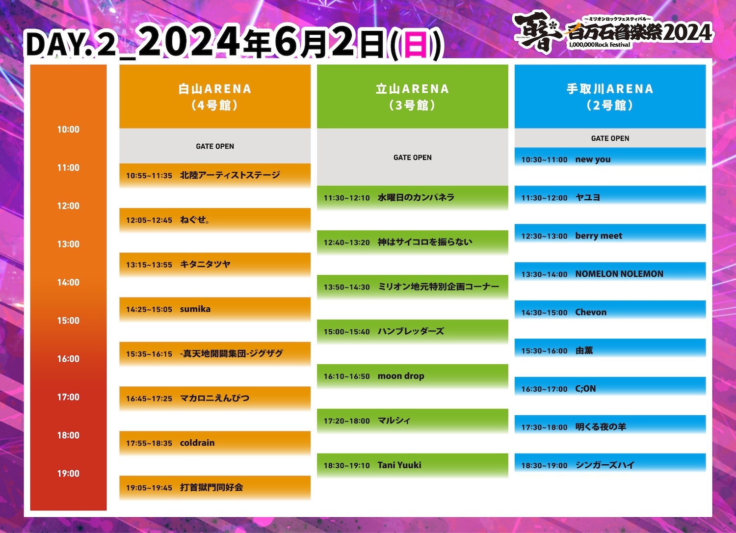 『百万石音楽祭2024〜ミリオンロックフェスティバル〜』DAY2タイムテーブル