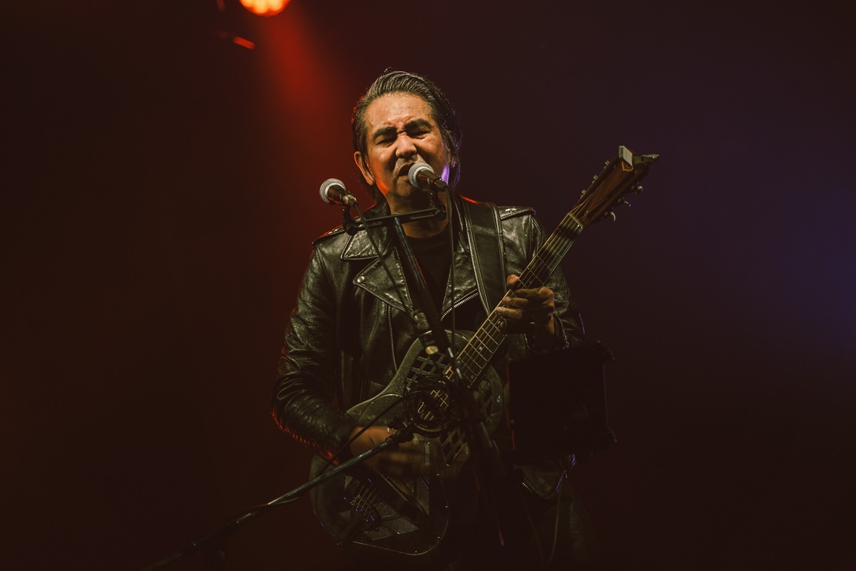 続いて登場したのは、田島貴男。2022年にはOriginal Loveとして『フジロック』のメインステージであるグリーンステージに出演、2019年にはレッドマーキーを超満員にしたのも記憶に新しいが、バンド、ソロ、セッション、コラボなどスタイルを問わず様々なステージに立ち続けている百戦錬磨の彼にとって、一気に田島ワールドへと誘うのはお手のもの。のっけから、そこが『フジロック』であろうがクアトロだろうが、ギター1本あれば戦える男、それが田島貴男だといわんばかりのステージで圧倒した。58歳の誕生日を迎え、観客から祝福を受けたこの日も革ジャンを脱ぎ捨て、全身全霊をかけたパフォーマンスでオーディエンスを魅了。毎回過去一番のライブを見せることができるアーティストは少ないと思うのだが、今回もまた期待を裏切られることはなかった。「God bless you, Fuji Rock! フジロックで会いましょう!」と告げてステージを去った田島は、今夏の『フジロック』では河合代介(Organ)、大槻英宣(Drum)と共に、Original Love Jazz Trioとして7月26日(金)に出演する。