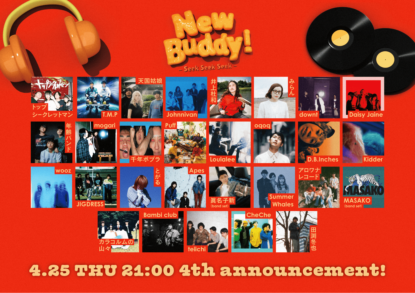 2024年5月25日(土)に下北沢5会場にて開催される『New Buddy! -Seek Seek Seek-』の第4弾アーティストが発表された。