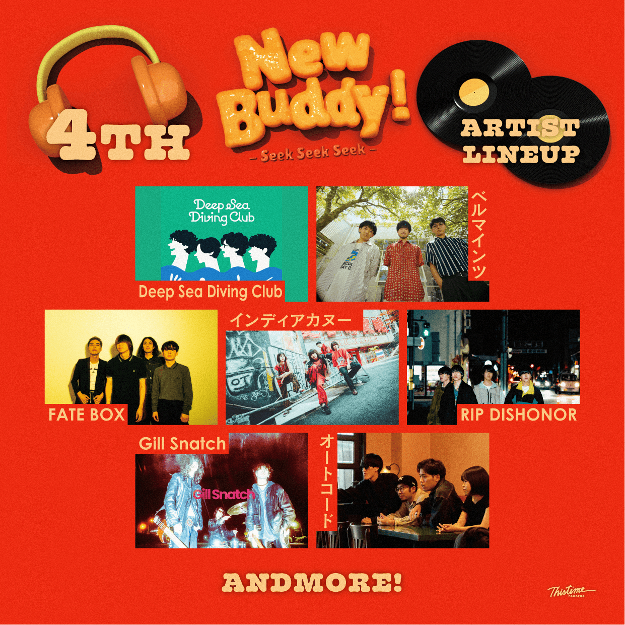 『New Buddy! -Seek Seek Seek-』は、昨年THISTIME RECORDSが設立20周年を記念して東京と大阪で開催したサーキット型フェスのスピンオフバージョン。今回、出演者第4弾としてDeep Sea Diving Club、ベルマインツ、FATE BOX、インディアカヌー、RIP DISHONOR、Gill Snatch、オートコードの7組が発表になった。