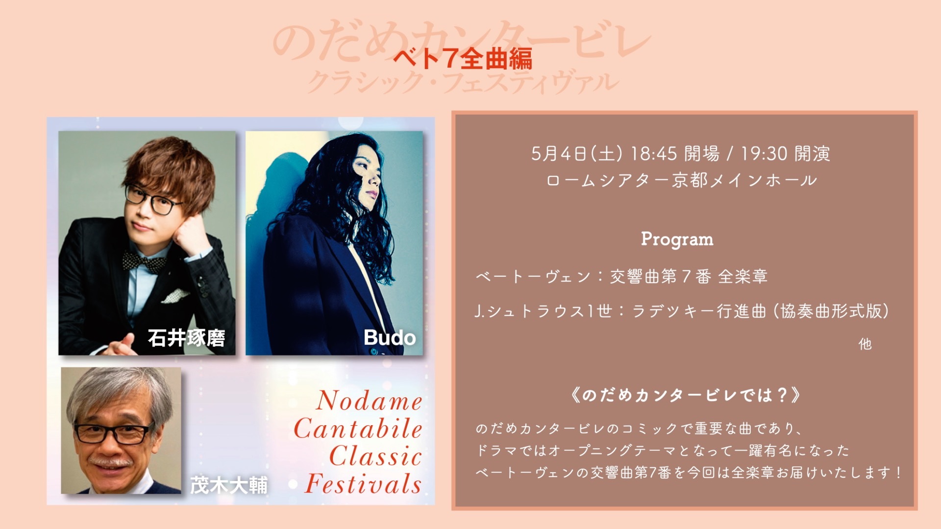第3部「ベト7全曲編」では、コミックで重要な曲であり、ドラマのオープニングテーマとしても一躍有名になったベートーヴェン「交響曲第7番」の全曲を堪能できる。第1部で協奏曲を弾いてくれた石井琢磨とBudoが「ラデツキー行進曲」の連弾ヴァージョンでフェスの楽しさを盛り上げ、ラストでは、コミックでもラストシーンを彩った、今年没後100年となるイタリアのオペラ作曲家=プッチーニの名作、歌劇『ジャンニ・スキッキ』からアリア「私のお父さん」を第2部で夜の女王を歌った鈴木玲奈が歌ってくれる。