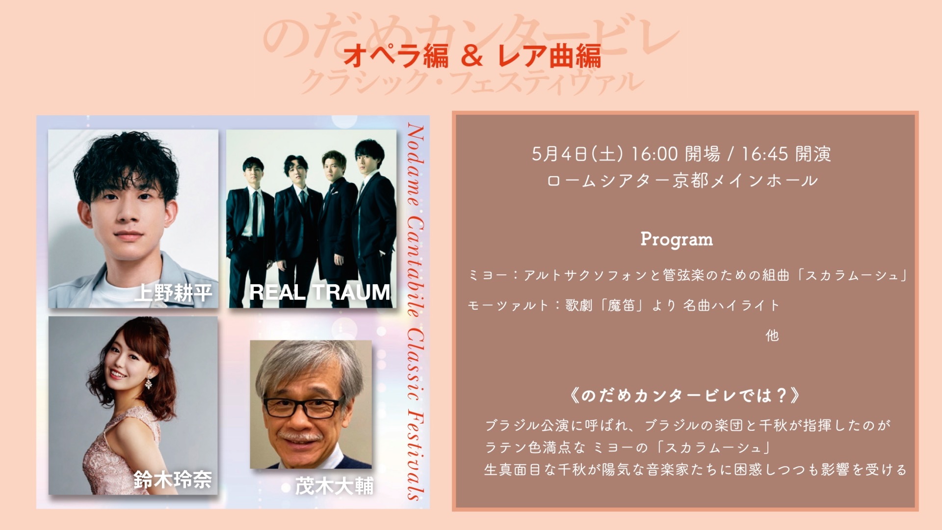そして、ついにリアルなフェスティヴァル形式での公演が決定。『のだめカンタービレ・クラシック・フェスティヴァル in KYOTO』と題し、2024年5月3日(金・祝)~5月5日(日)の3日間、ロームシアター京都にて行われる。本企画について、各プログラムの詳細が明らかとなったので、改めて紹介していく。(文=神山薫)