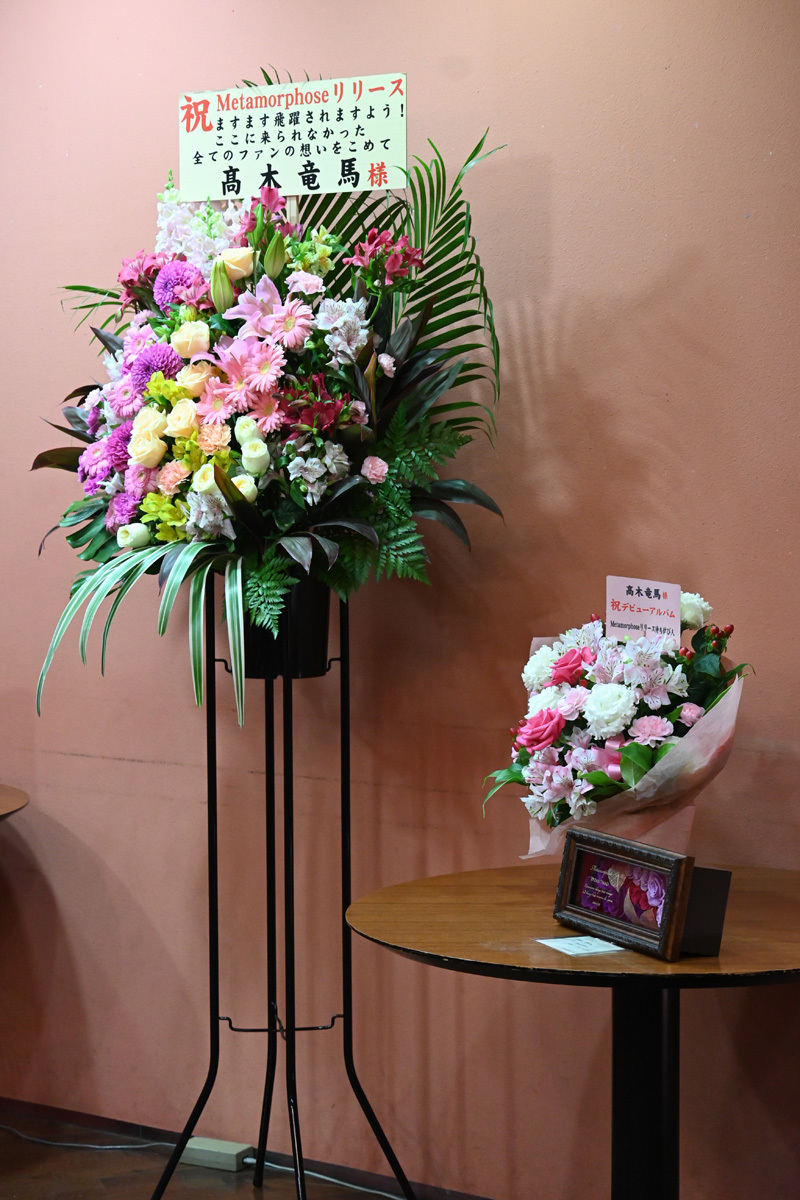 デビューアルバムリリースを祝う装花も届き、ロビーを華やかに彩った。