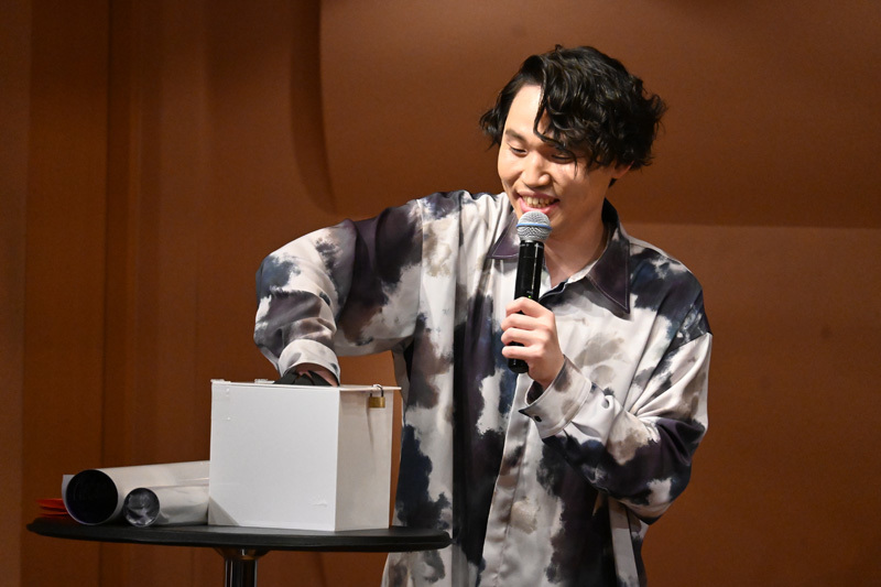スペシャル企画の最後は髙木からのプレゼント抽選会。「どうしても僕がこれをやりたくて」と、おどけながら白い抽選箱からくじを引く。髙木からのプレゼントは、直筆サイン入りのアルバムポスター、そして、今年度から京都市立芸術大学で教鞭をとっている繋がりから、”京都のお土産”としてタオルをチョイス。髙木の心遣いに会場は温かな雰囲気に包まれた。