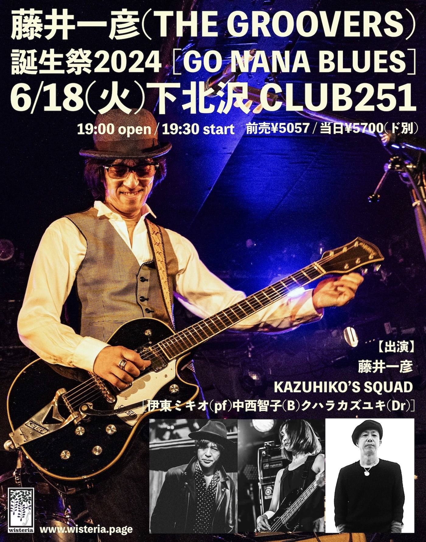 藤井一彦(THE GROOVERS)のバースデーライブ『GO NANA BLUES』が6月18日(火)に東京・下北沢 CLUB251で開催されることがわかった。