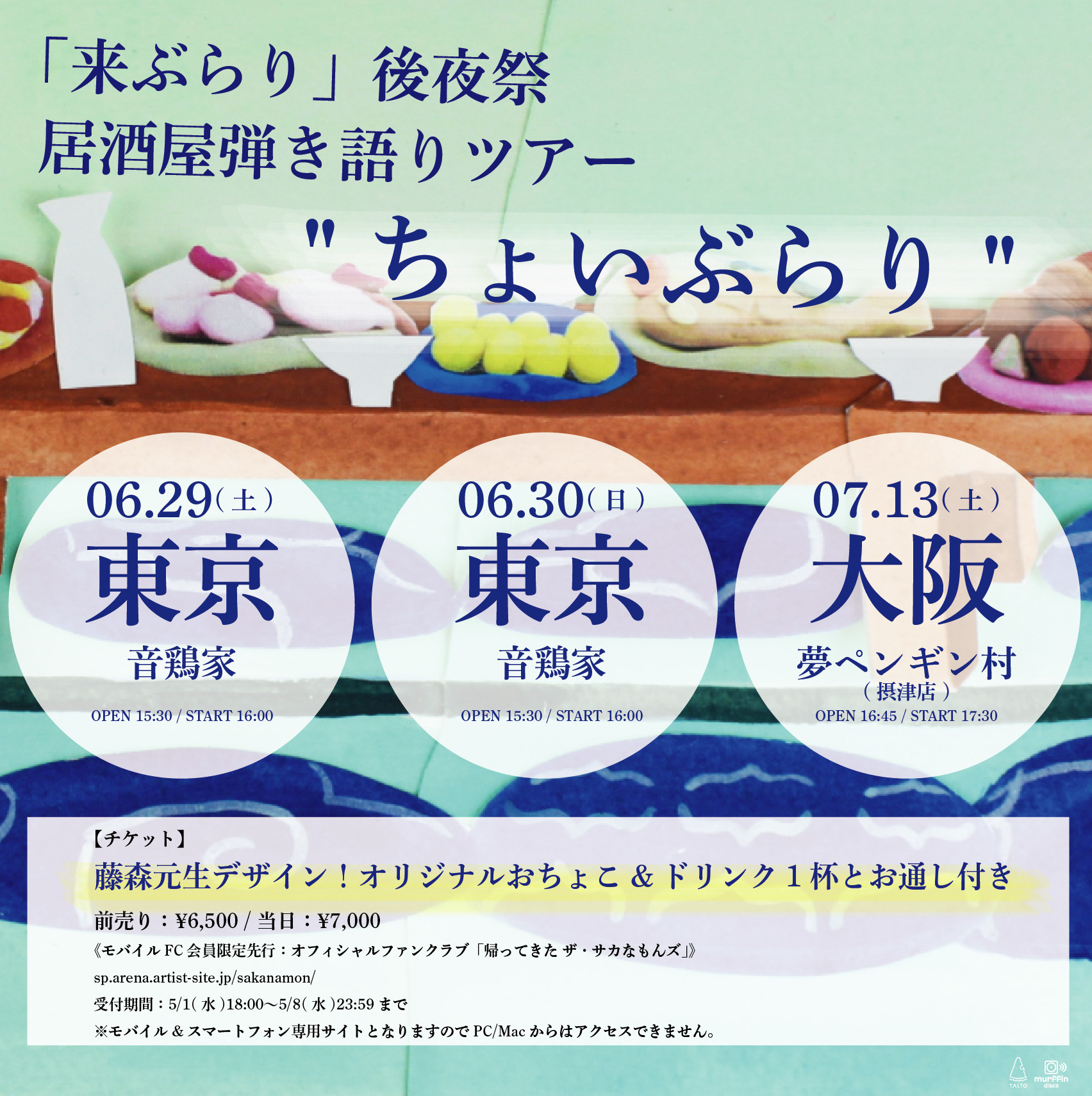 SAKANAMONの藤森元生(Vo.Gt)が、ワンマンツアー『SAKANAMON TOUR 2024 "来ぶらり"』の後夜祭として、『「来ぶらり」後夜祭 居酒屋弾き語りツアー"ちょいぶらり"』を東京・大阪の居酒屋で開催することを発表した。