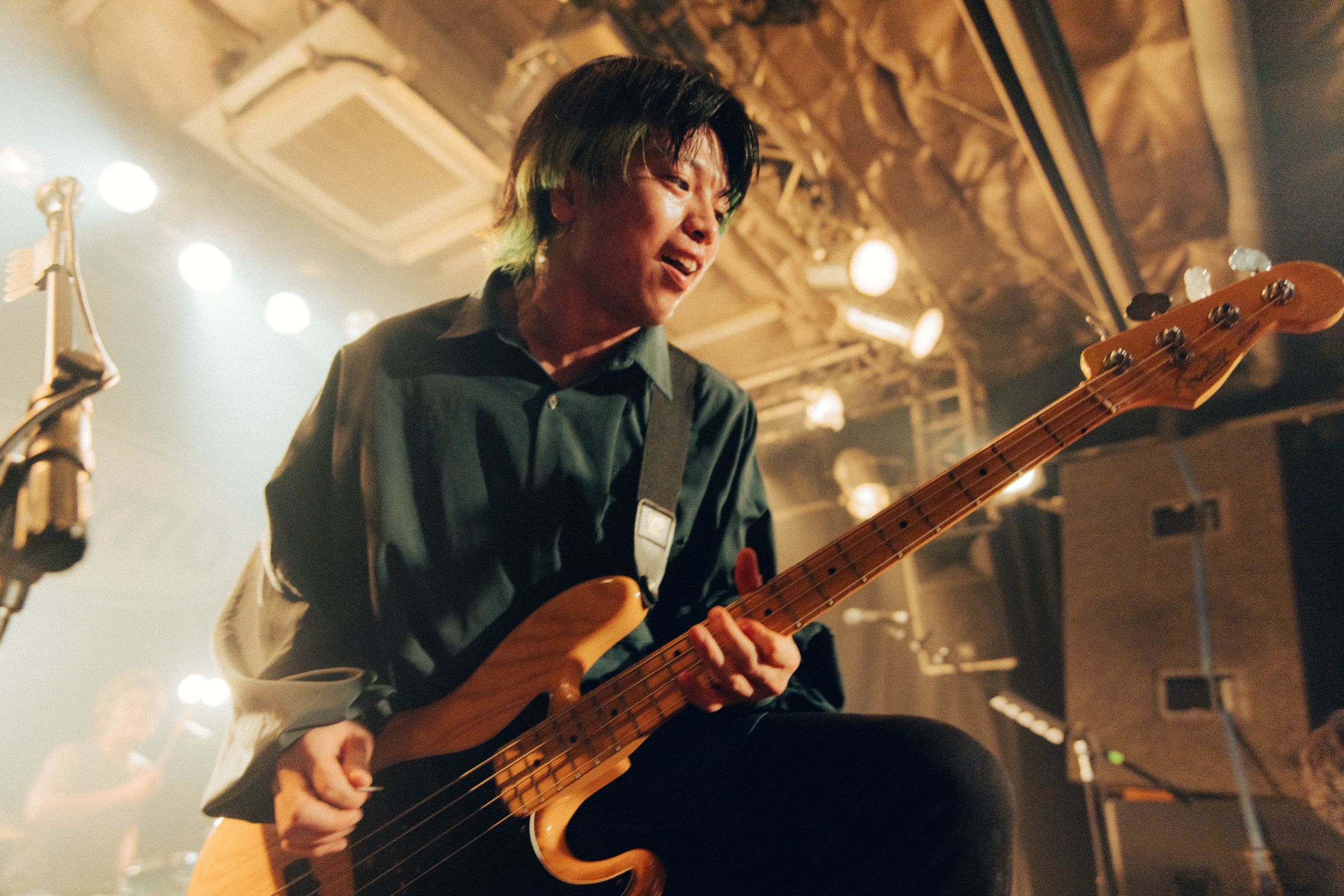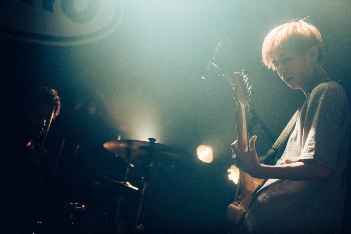 冷たい空調の風も生ぬるく感じるような熱気の中、セレクトされたのは「フロントライン」と「好きになってごめんなさい」。「寝たふりの君へ」と同じく1stデモシングルに収められた“始まりの歌”2曲を続けざまに持ってくる構成は、これまでの延長線上に今日があること、そしてまだまだ先へと歩み続ける彼らの姿を想像しない方が難しい。特に<好きになって 伝えたくて 俺は恋に恋してた>と赤裸々な恋心を吐露するミドルチューン「好きになってごめんなさい」は、無数のライブを経てバンドが十分な筋力をつけたことを証明するように、3人の重厚なサウンドが光っていた。
