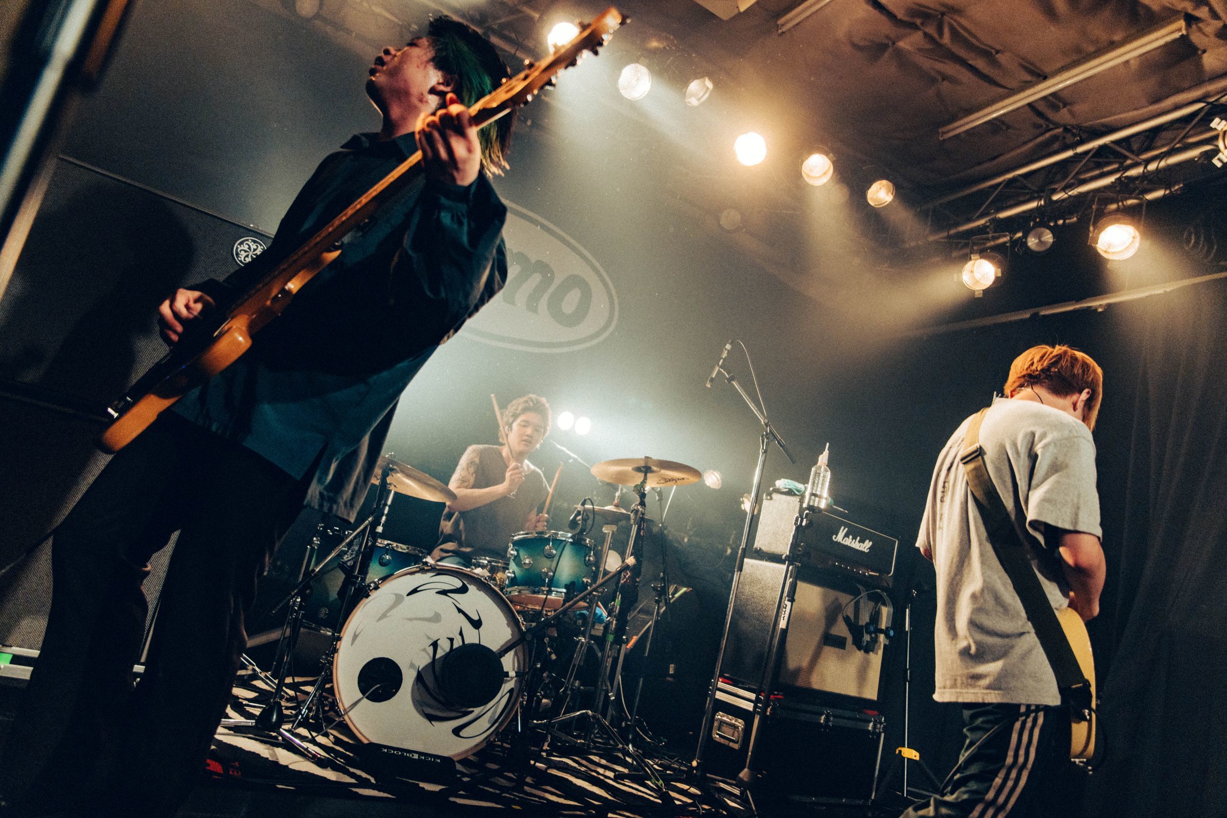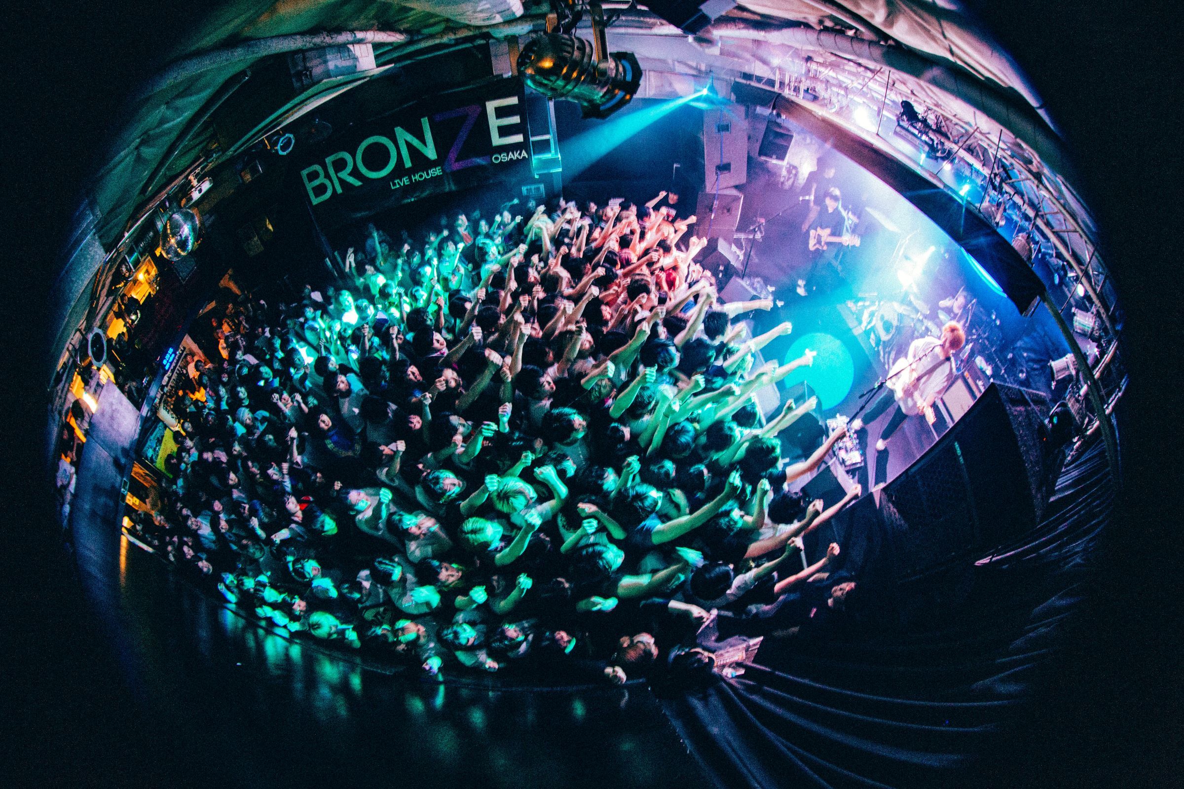 「メジャーデビューをして何が変わった? 何も変わってない。BRONZEに初めて来たあの時からずっとライブハウスでかっこいいバンドになる……と、あの時の自分に言います。心斎橋BRONZEでかっこいいライブをやっています! 今日が俺たちの最高点!」とシャウトして、マッシブなツービートが炸裂する「星とオレンジ」へ雪崩れ込めば、視界は見渡す限りダイバーで埋め尽くされる。岡本が「おい!」と煽っただけで発生した<止まらない>の巨大なチャントは、メンバーの一挙手一投足を見逃すまいとするファンと3人の信頼関係によって支えられた、偶発的で瞬発力の問われるセッションのようであった。