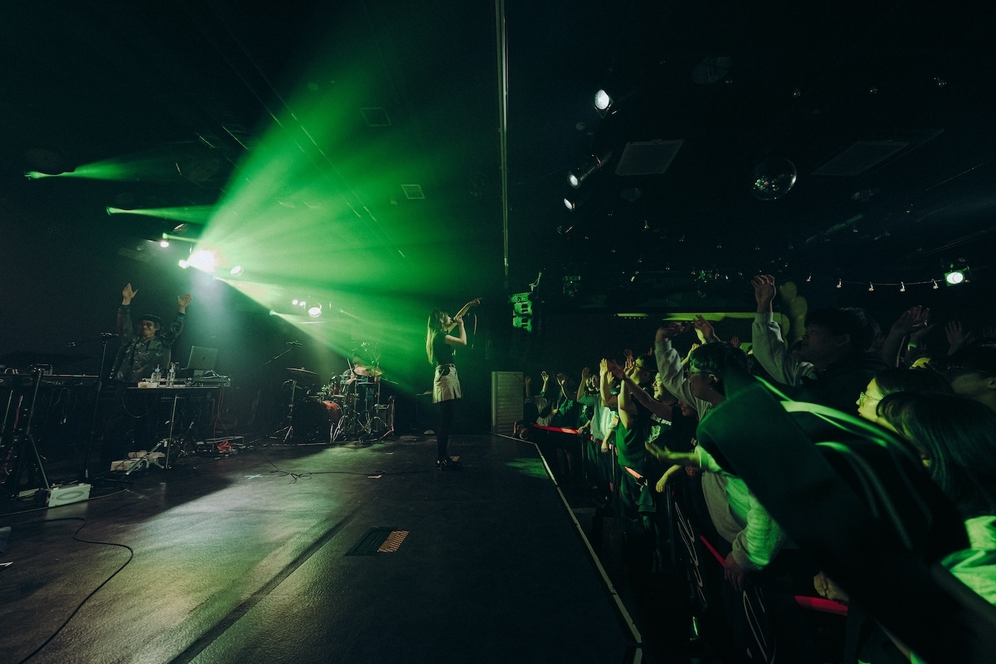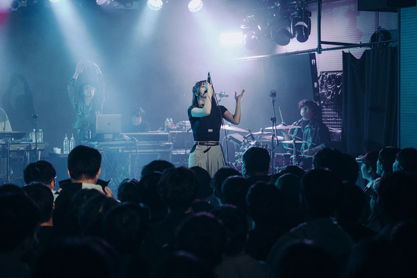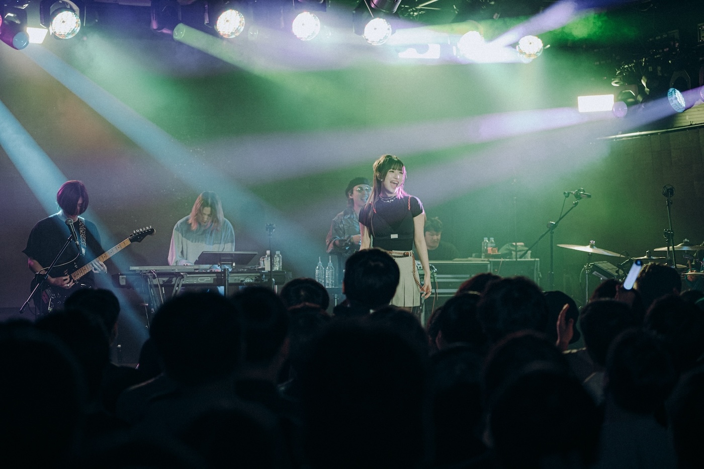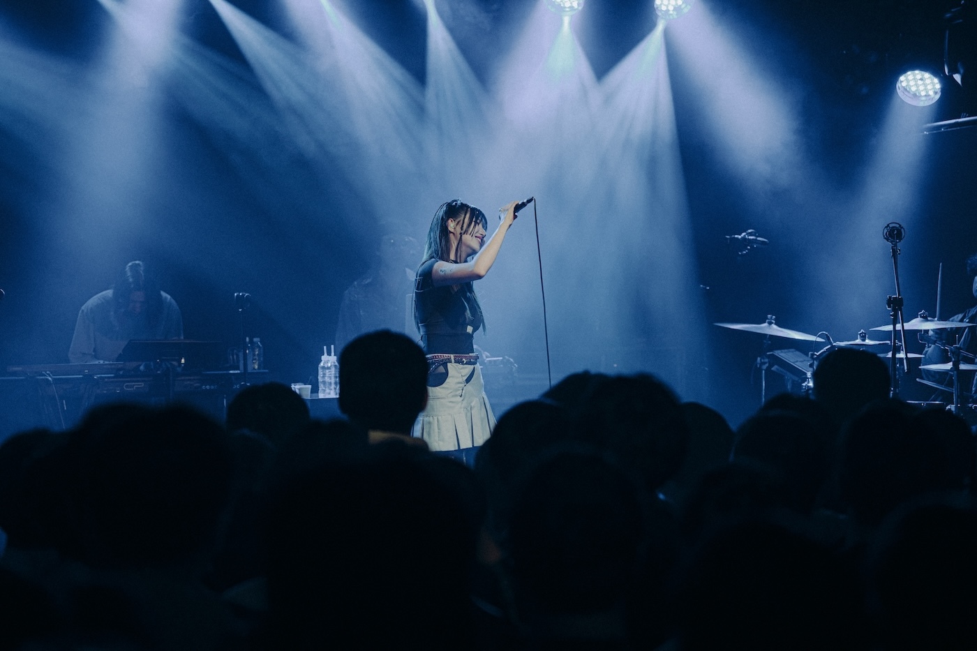 ライブの始まりに幻想的なオープニングSEが流れ出すと、ソールドアウトとなったこの日のライブハウスに集まった超満員の韓国ファンからの大声援に包み込まれ、eillが登場。一曲目から、韓国でも大人気の映画「夏へのトンネル、さよならの出口」挿入歌「プレロマンス」で観客を沸かせると、アップテンポなナンバーの「palette」「FUTURE WAVE」を続けて披露し、会場のボルテージを徐々に上げていった。