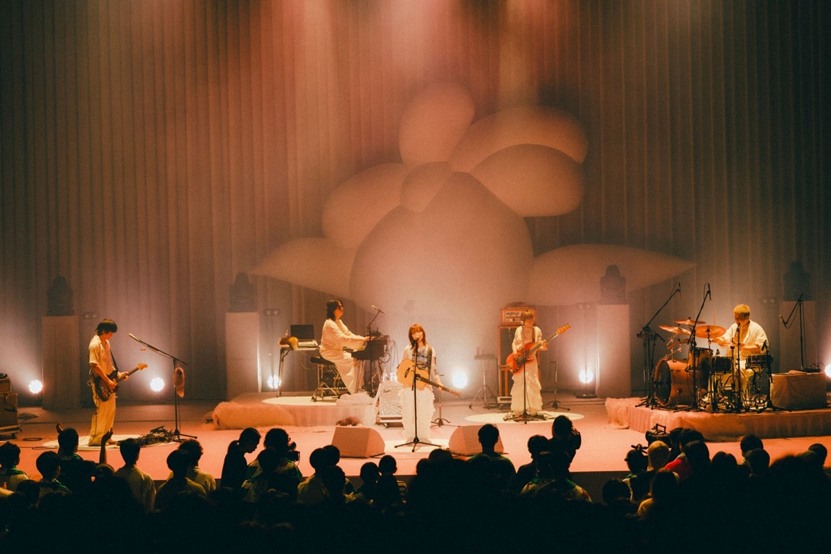 1曲ごとの世界に没入させながら、MCになると素の表情を見せ、サポートメンバーにツアーの感想を聞くにしな。全員が手応えを感じて、すでに名残惜しそうだ。今回のツアーでは「箸休めタイム」として、ツアーの最中にリリースされたニューシングル「It's a piece of cake」をファンのシンガロングも交えたラフなスタイルで演奏する、それこそ「Feeling」を体現するコーナーがあった。作品作りを共にする仲間と真夜中の公園で過ごした記憶から作られたこの曲。音楽を作るという目的を同じくする仲間とのうっすらとした未来への不安などがドキュメント的だが、この感覚は同世代のファンにとってもすごく身近なテーマだろう。綺麗に揃ったシンガロングというより、自然と参加する声が大きくなっていくのがこの曲のシーンともリンクしていた。