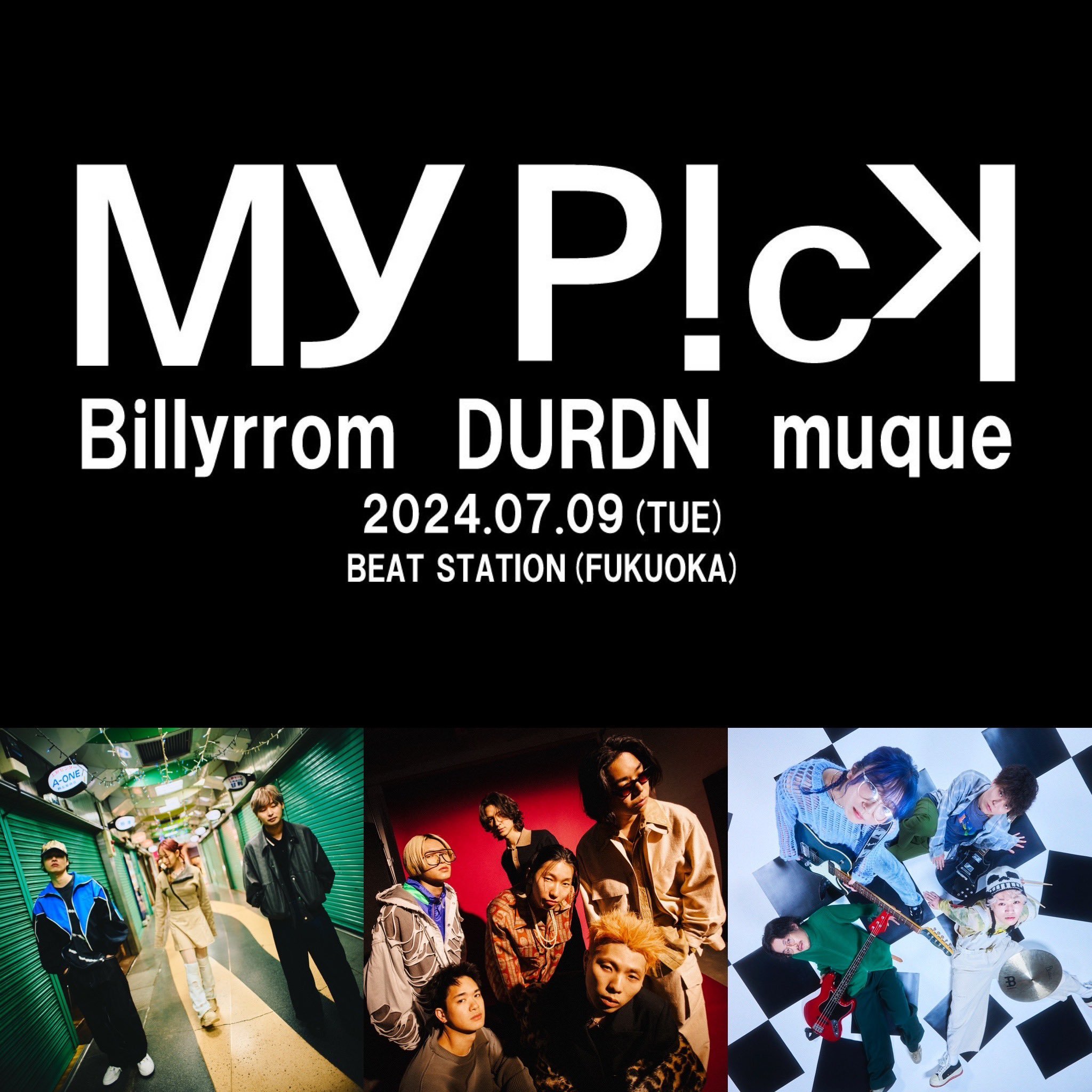 『My Pick』福岡のラジオ局・LOVE FMとキョードー西日本がタッグを組んで、福岡の街を音楽で盛り上げるプロジェクト。たくさんの良い音楽に出逢いたい、出逢って欲しいという想いから誕生したイベントで、記念すべき第1回目となる今回は、Billyrrom、DURDN、muqueが出演する。