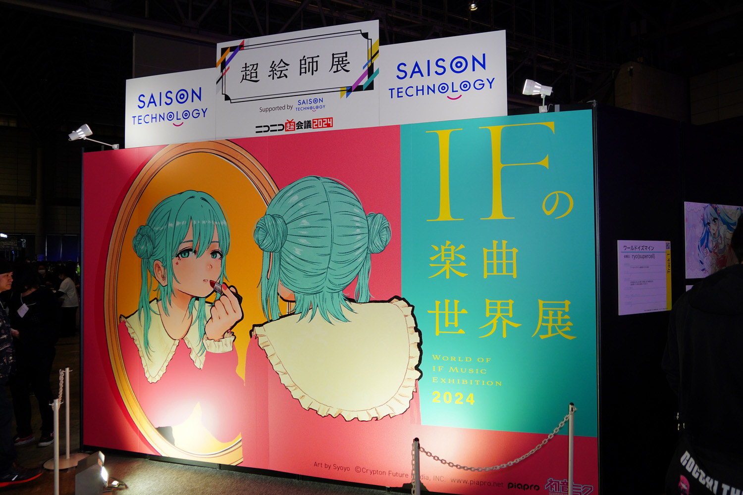 「超絵師展 ~IFの楽曲世界展~」では総勢100名の人気イラストレーターが、有名ボカロ曲の世界を当時のオーダーシートを基に新解釈で描き下ろし。なじみ深い曲の新たなビジュアルの数々にボカロ曲ファンも見入っていた。