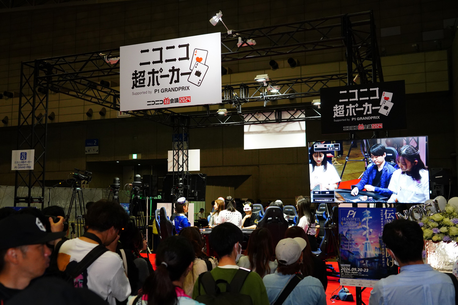 「ニコニコ超ポーカー」ではプロの棋士VSポーカープレイヤーや人気踊り手など、様々なジャンルのメンバーによるポーカー対決を披露。衆人環視の中、観客からは手札が見えている中で繰り広げられる対決に、このコーナーだけが緊張感と静寂に包まれていた。