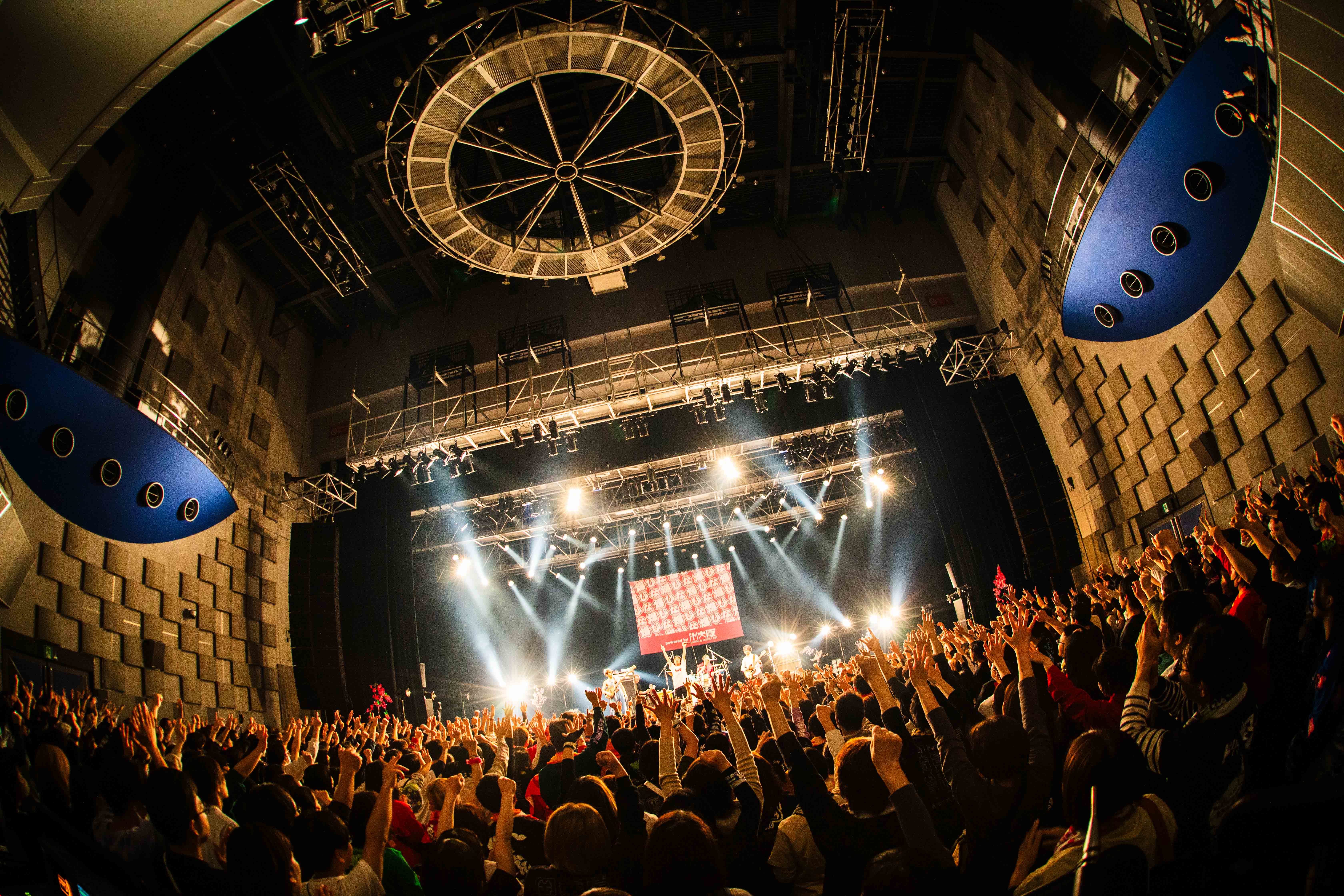 さらに2月にできたばかりの新曲「FLAG」をお披露目。「お子様からお年寄りまで楽しめるライブにしたくて。旗揚げゲームを歌にしました」(康雄)と言葉にするも、歌声はヴィブラートの効いた完全ビジュアル系モード。シームレスに続けた「クラーク博士と僕」では、冒頭からシンガロングが湧出!
