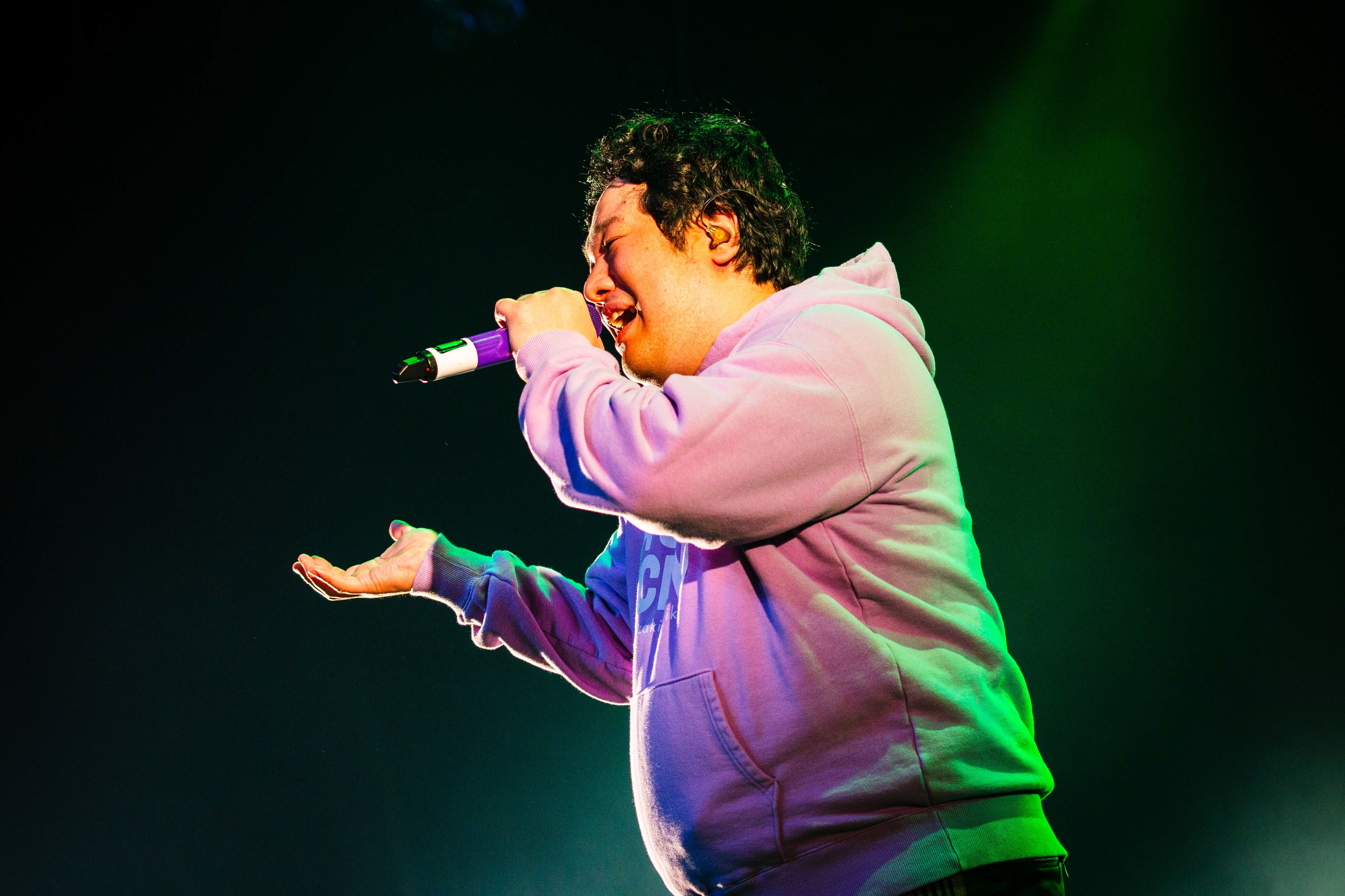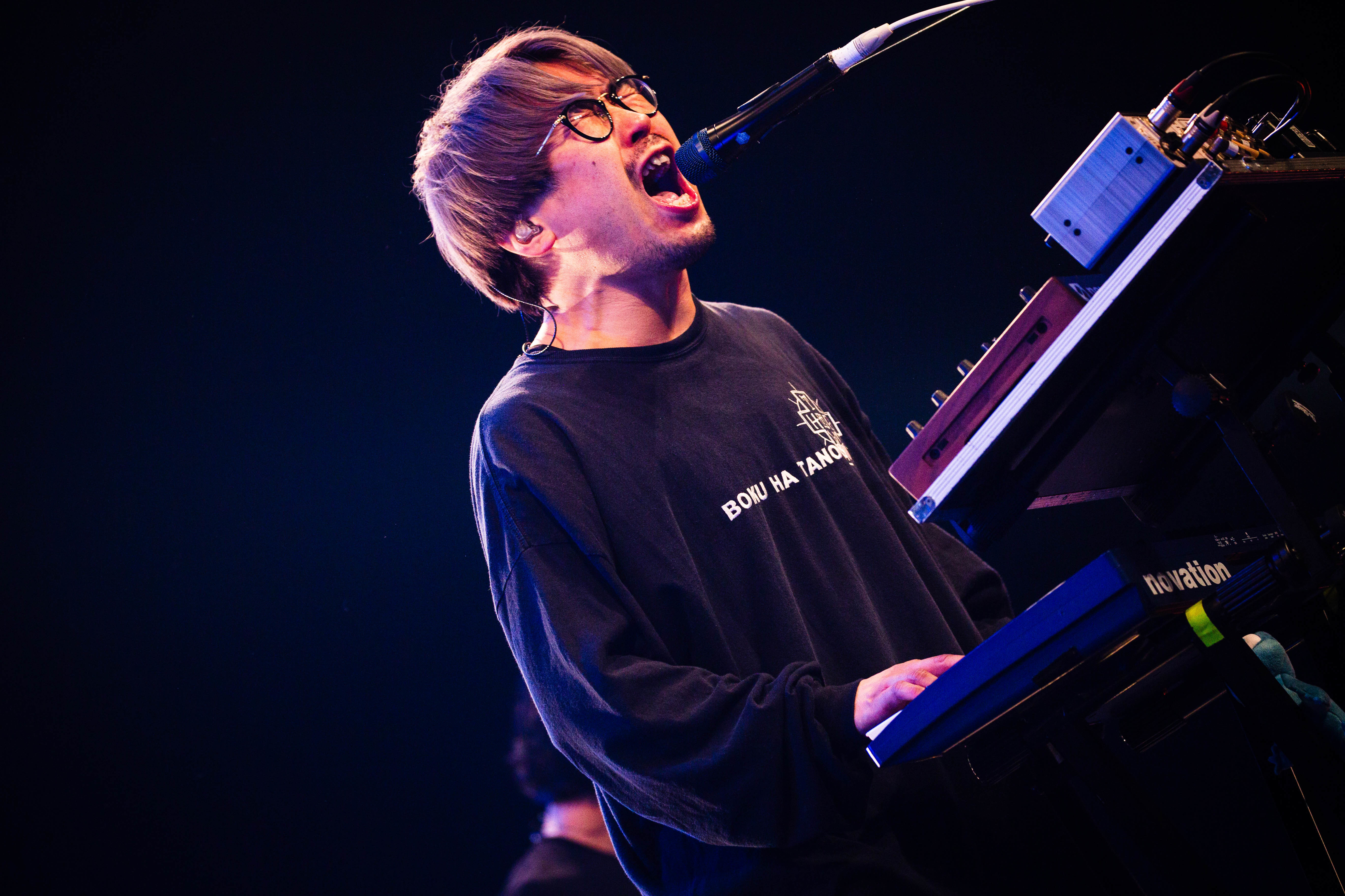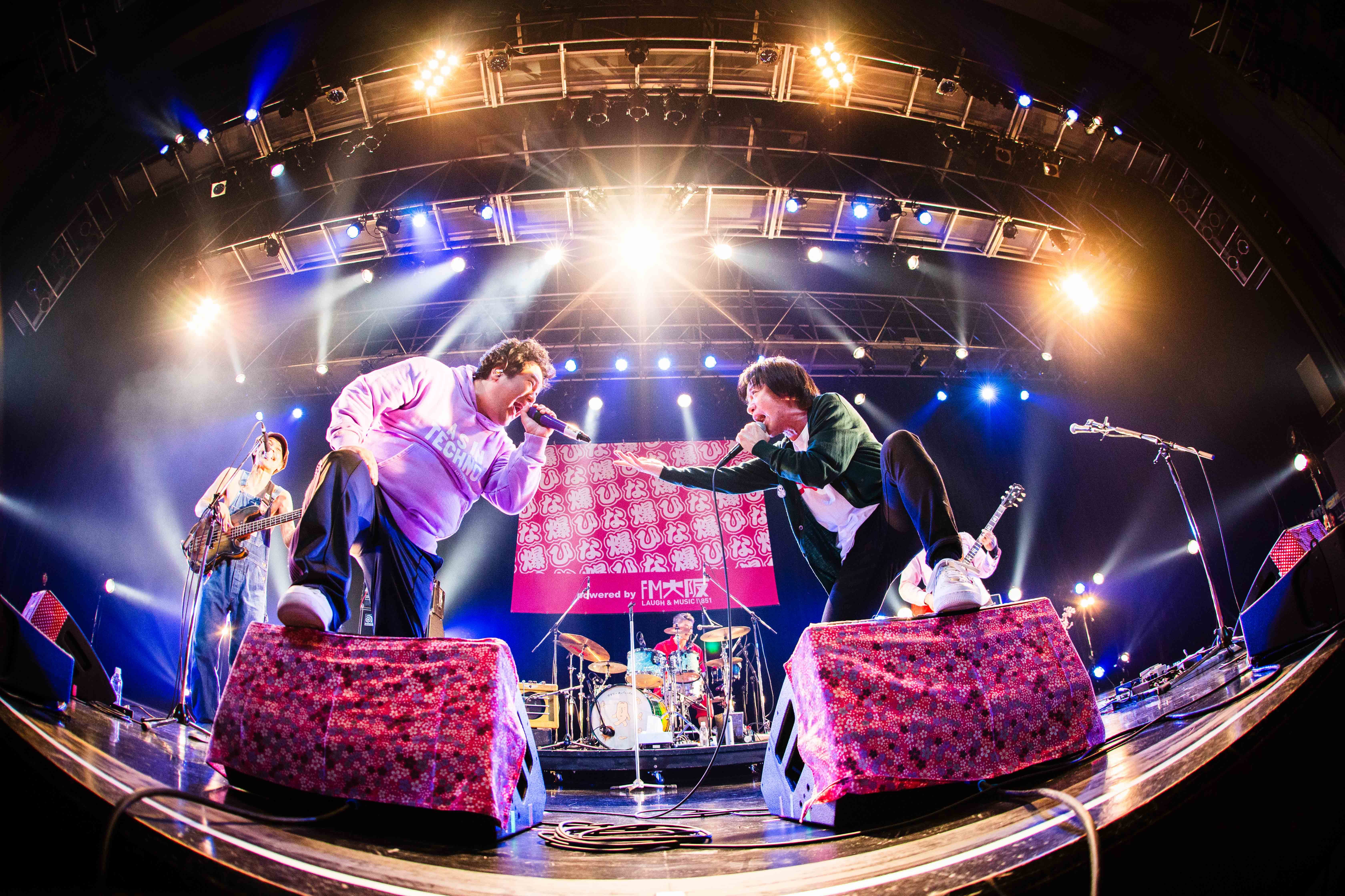 「我々は小道具ってヤツが何も出てこない(笑)」(マエカワ)と笑いつつも、たった数曲でここまで心躍らせるフラカンだって決して普通なんかではない。そしてこの日ならではのお楽しみも。「僕らの曲をカバーしてくれて、僕らの曲よりたくさん流れている!」(鈴木)と促されて再登場したのは、岡崎体育だ。SMBCグループのテレビCMソングでもある「深夜高速」を本邦初コラボレーション! 自身のステージとは打って変わって「緊張しています……」と口にし、敬愛をにじませる岡崎体育。二声のハーモニーで一層増幅する鮮やかな歌世界には、客席も拍手喝采だ。