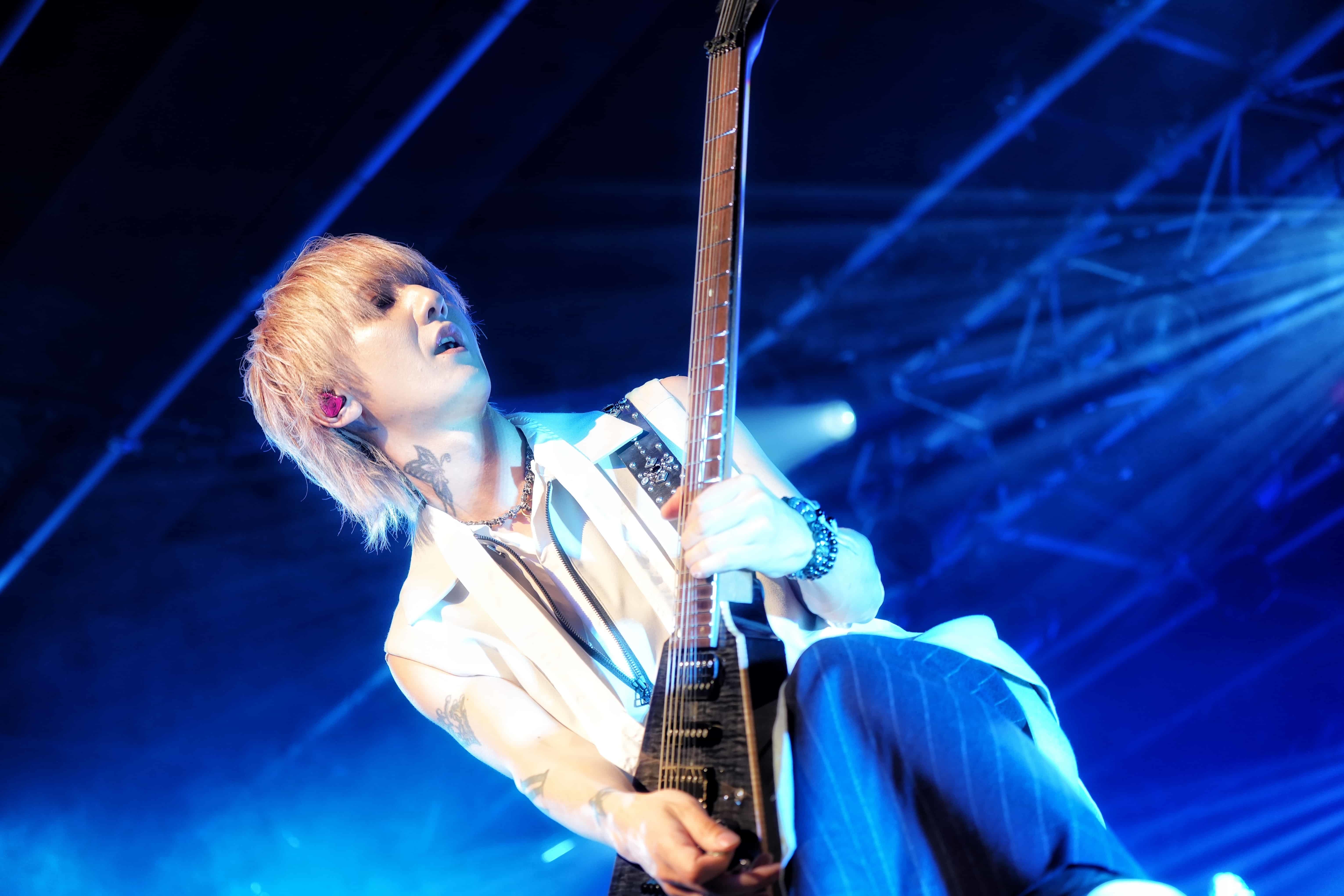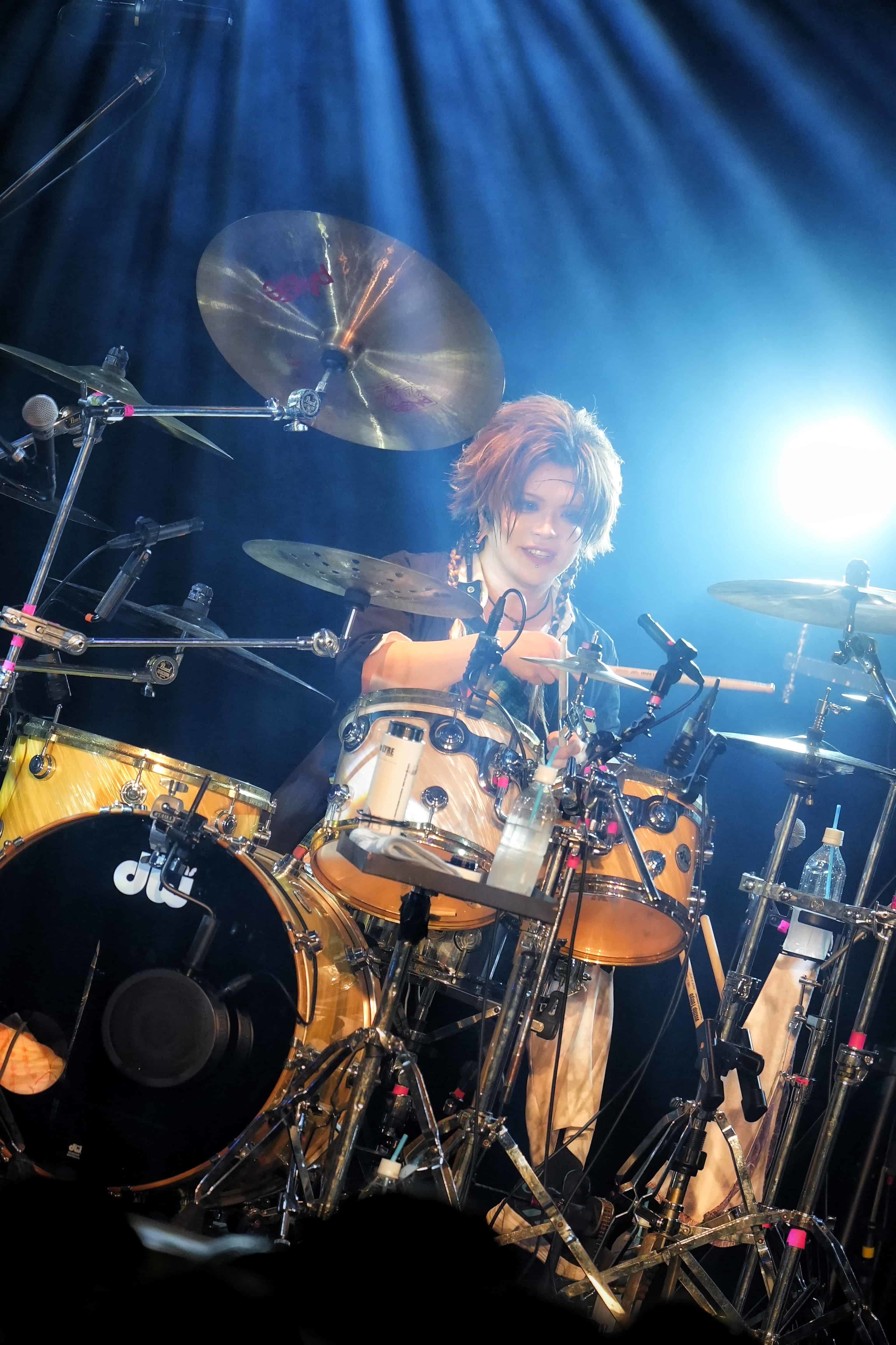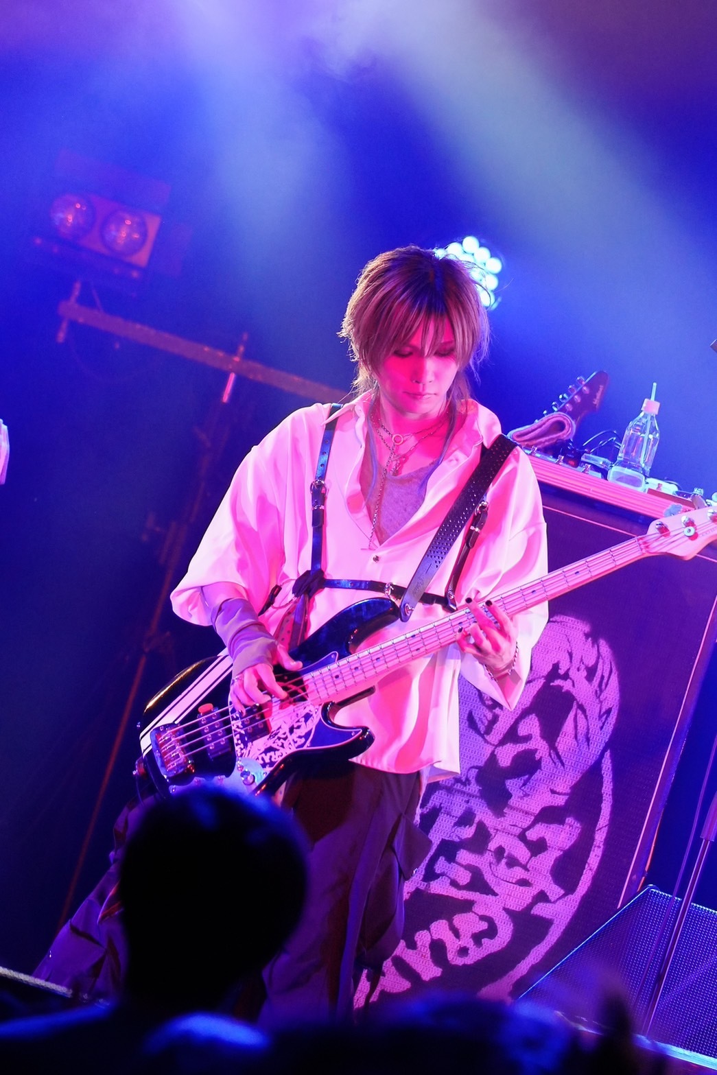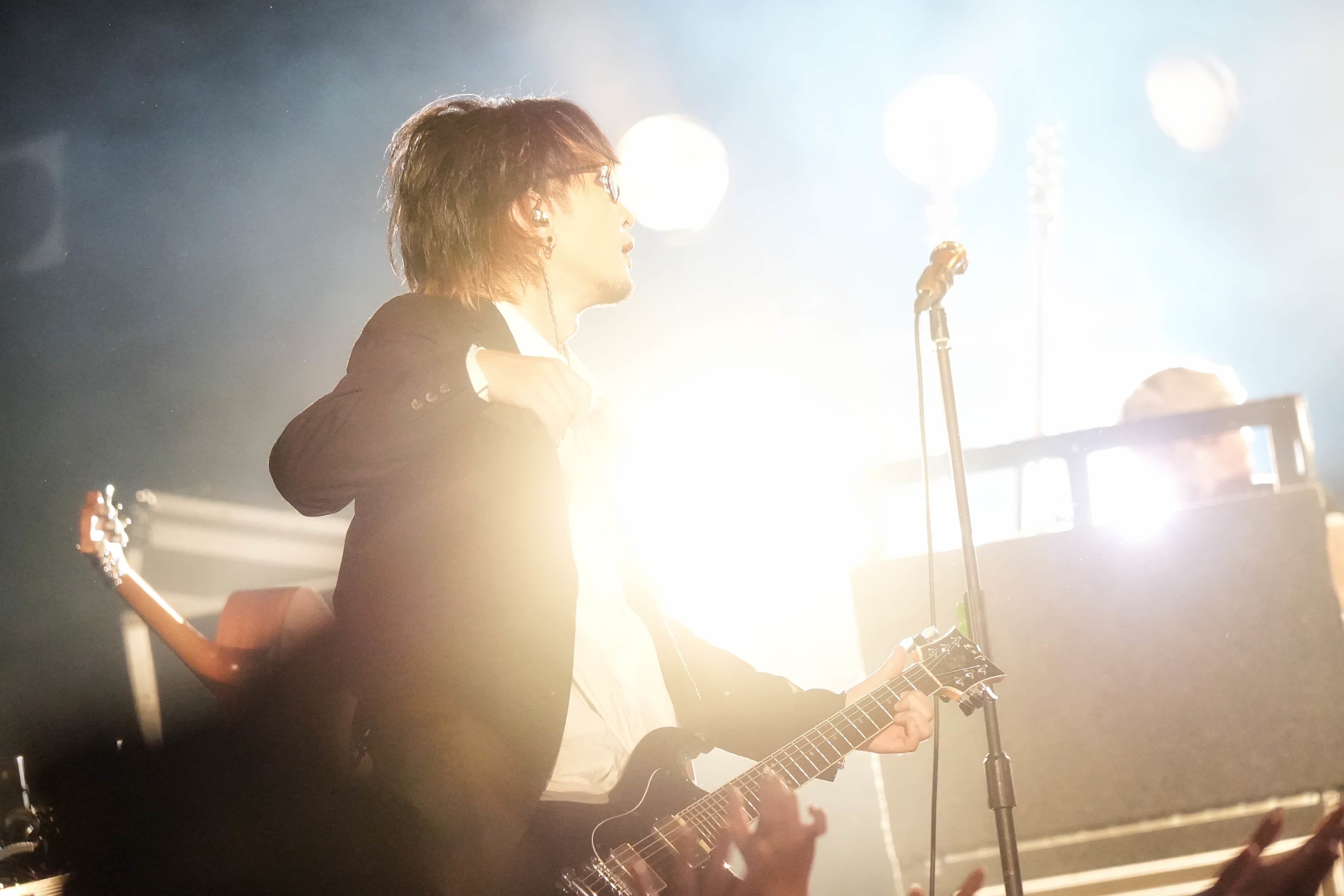 ……が、ラストスパートに差し掛かる前に、バスドラムのヘッドが破れるというハプニングが発生。ちょうどMCで「『LAYOUT』のツアーで、「My Second B-day」でペダルが外れて演奏中止したこともあった。あと、昔SHIBUYA BOXXでやった主催で「Dead Cherry」をミスって裏で大泣きしてた」とTohya自身が話していた矢先の出来事に、「持ってるな~」と思ってしまったのはここだけの話。「そんな若い頃もありましたね」と言ったYuhも「「LAYOUT」のアルペジオは緊張する」と話していたのだが、彼がフライングVを男らしく鳴らすところも魅力的でありつつも、抒情的なフレーズに合わせたギターソロも素晴らしく、例えばこの日演奏した「REM SLEEP」のクリーンな音色に思わず涙腺をやられて視界がにじむほどだったこともお伝えしておきたい。