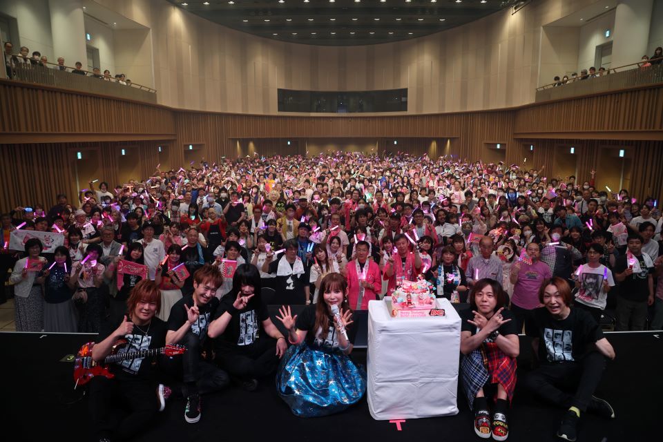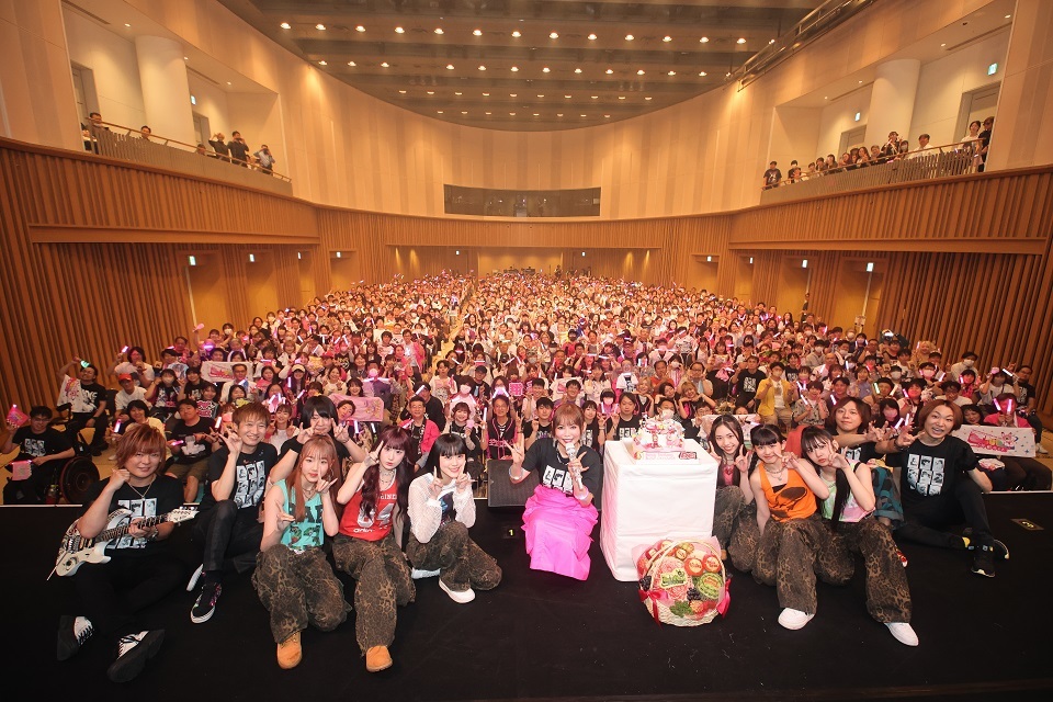 アンコールでは、グッズTシャツ姿のしょこたんが再登場。ファンの大歓声があがると、ステージにサプライズケーキが運びこまれる。バンドメンバーである「ギザレンジャー」の演奏にあわせて、OPアクトを務めた“WE3M”や会場のファンからの「ハッピーバースデー」の大合唱で、“レベル39”を盛大にお祝いされた。