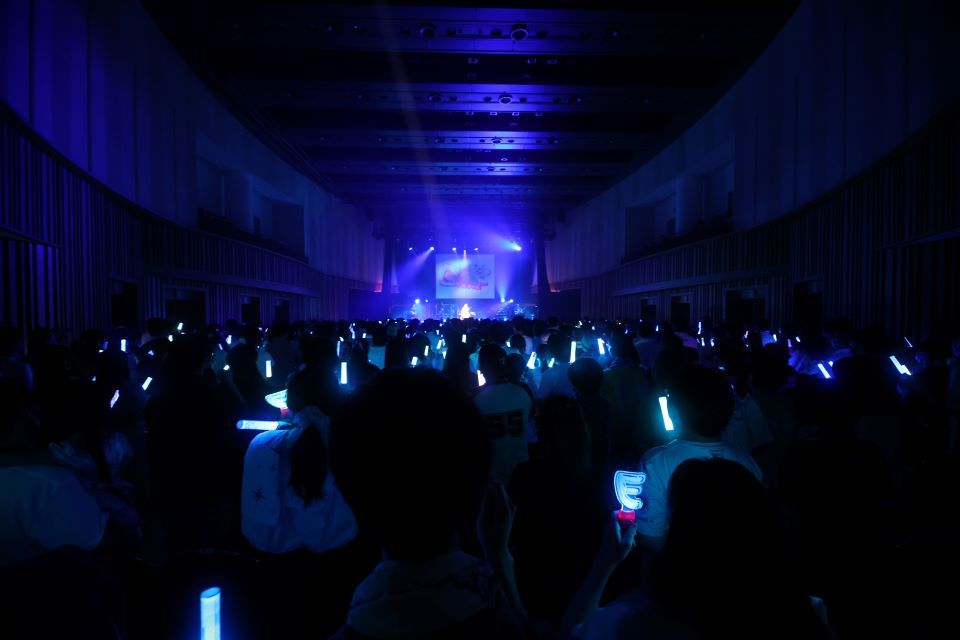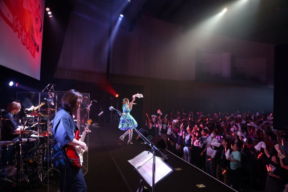 さらに続いては「ドラゴンクエスト」生みの親である、堀井雄二が手がける名作ゲーム「オホーツクに消ゆ」のリメイク版「北海道連鎖殺人 オホーツクに消ゆ ~追憶の流氷・涙のニポポ人形~」主題歌、同氏による初作詞で、ヒャダイン作曲の新曲「流氷に消ゆキラリ」を初披露。壮大なバラード曲を初披露する緊張の姿に、“オホーツク”をイメージした青いサイリウムで、客席のファンも懸命に応える。なんと、客席で実際に見守っていた堀井氏を見つけると、ステージ上から声をかける一幕も。