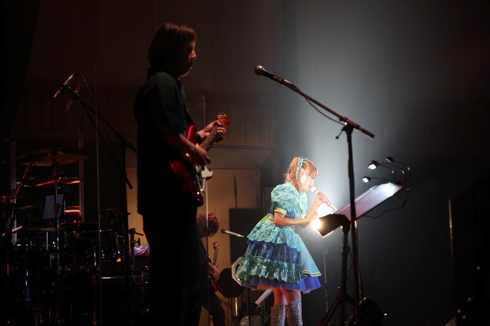 そのまま、バンド編成では初披露となる、新進気鋭のクリエイター・Sohbanaが手がけたアニメ「16bitセンセーション ANOTHER LAYER」OP主題歌「65535」へ。そして、2010年に発売されたアルバム「Cosmic Inflation」に収録された「Jewelry heart」を披露すると、久々の歌唱ということもあり、タイトルコールと同時に大歓声が上がった。