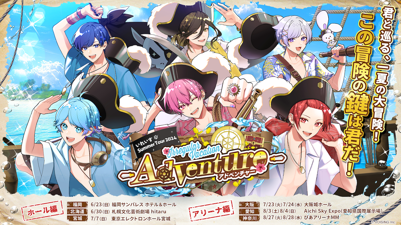 今回のツアーではホール編・アリーナ編でテーマが分かれており、ホール編ではAdventureという名の通り、冒険をコンセプトとしたライブに。キャッチコピーは『君と巡る、一夏の大冒険!この冒険の鍵は君だ!』となっている。また、5月5日(日)22:00より、いれいすファンクラブ『いれらぶ』にてファンクラブ先行を受付中。