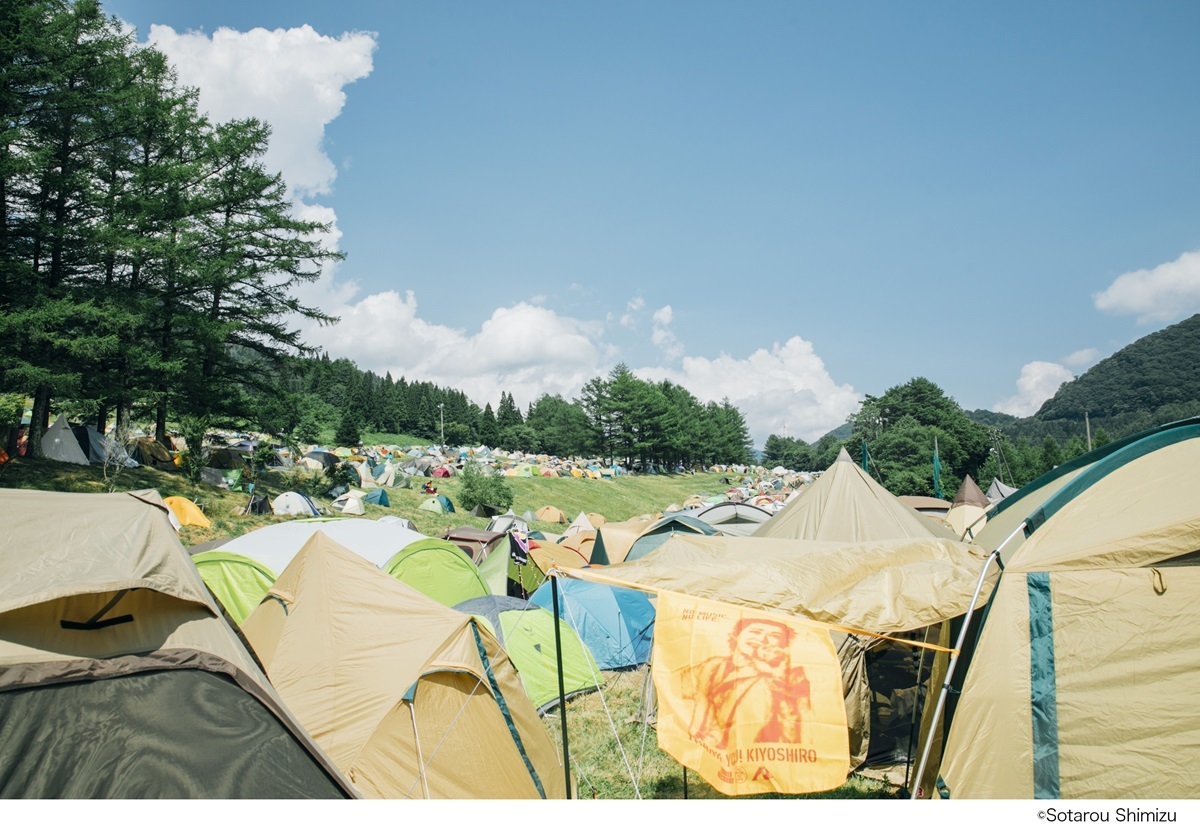 『フジロック』では開催期間中、参加する大半の人がキャンプをしながら過ごしている。主催者によるとテントの数は数千にも及ぶ。“フジロック百景”があるとするなら、緑豊かな山中に広がるキャンプサイト一面に、色とりどりのテントが立ち並ぶ様はその代表格と言える圧巻の景色であり、フジロック風物詩のひとつでもある。そこでは音楽を楽しむのと同時に、大自然の中での束の間のアウトドアライフを過ごす、ファミリーや友だちで構成されたグループから近年人気急上昇のソロキャンパーまで様々な人で賑わっている。