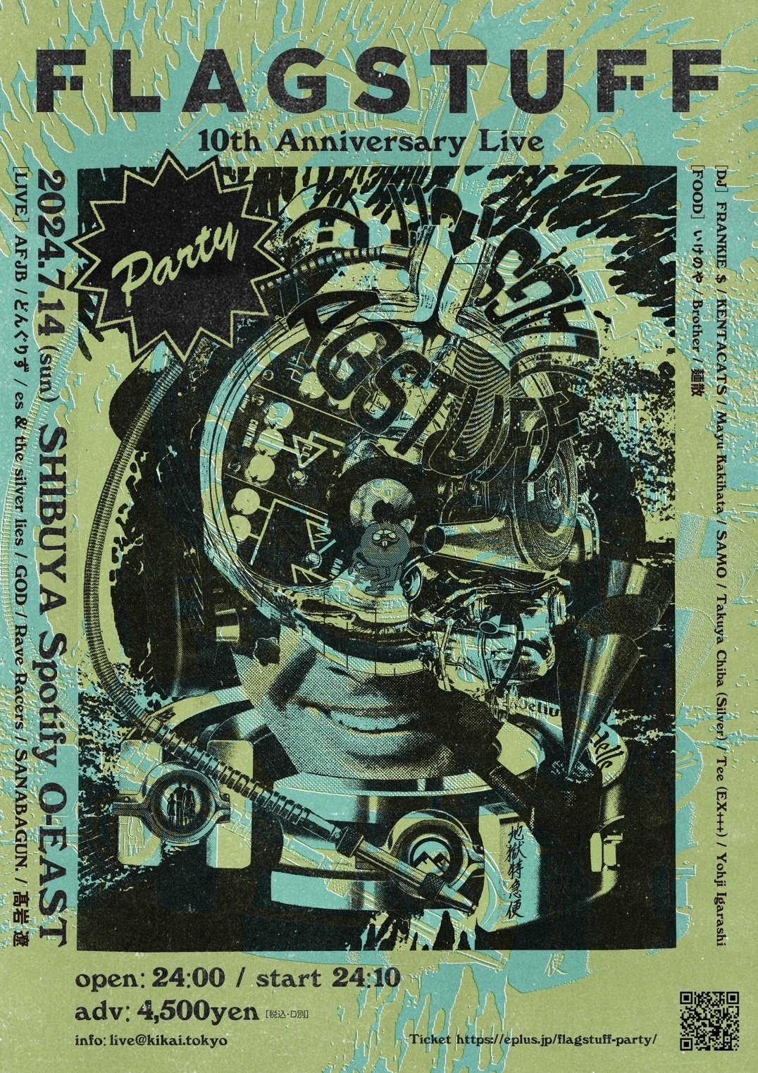“An uncategorizable genre"(何にもとらわれないボーダレスな物づくり)”をコンセプトに、2014年より東京でスタートしたF-LAGSTUF-F(フラグスタフ)の10周年を記念したLIVEはチケットが即日完売。LIVEに加えて同会場にて前夜にPARTYの開催も決定した。