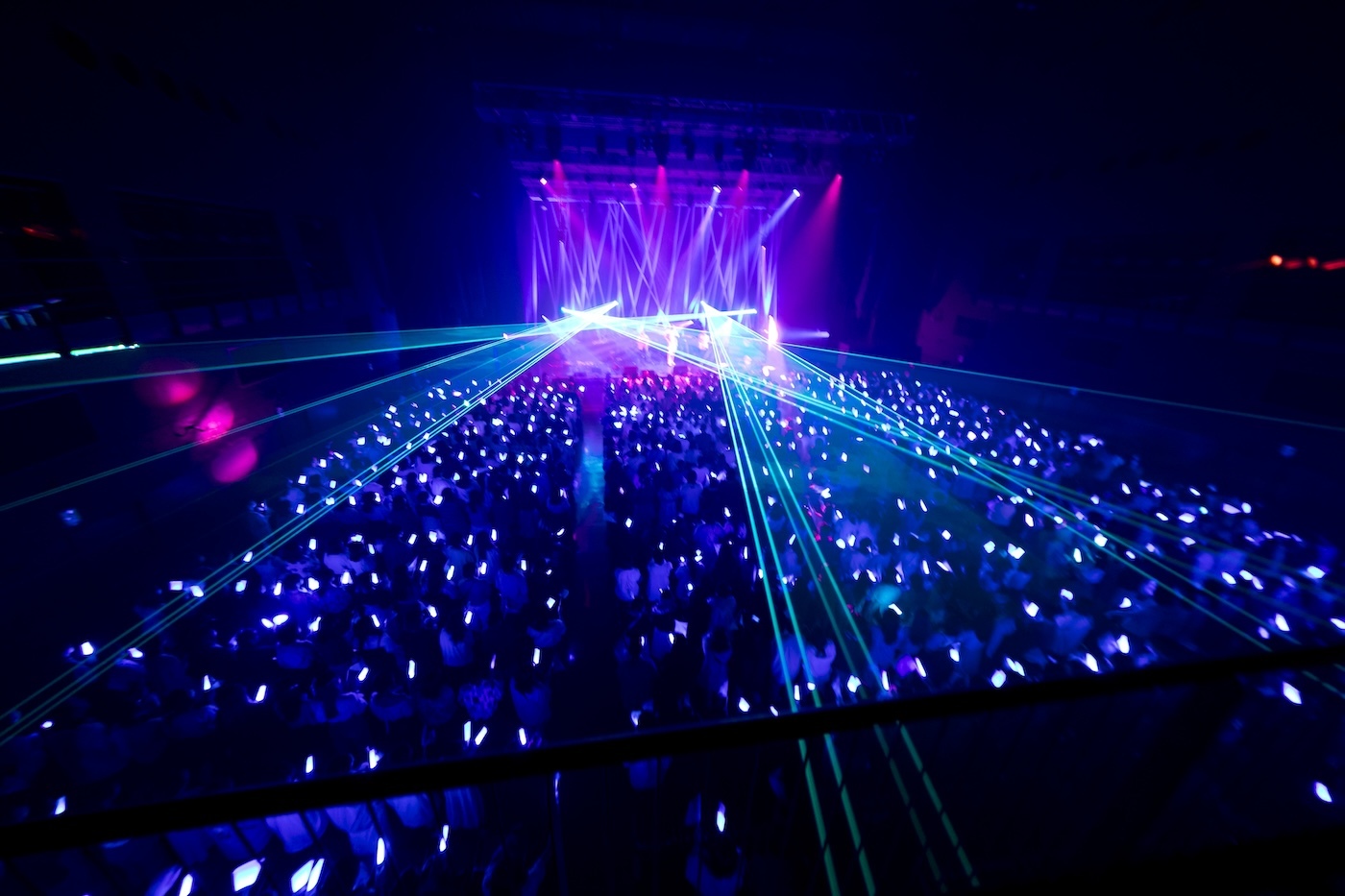 続けざま、たたみかけたのはレーザー光線が派手に飛び交う中で高揚感に拍車がかかった「[A]ddiction」、しゅーずのイメージカラーであるブルーのペンライトを振るオーディエンスのコールが大きく響いた「Accident」。ダンサー2人と見事にシンクロしたしゅーずの隙のないパフォーマンスにも驚かされる。