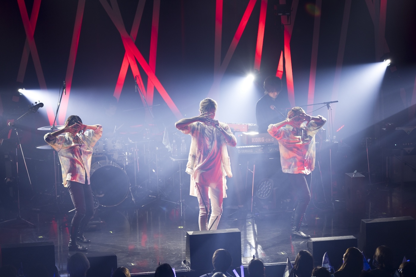 「このイントロなんの曲かわかりますか? 盛り上がるところたくさんあるので大きな声出してください!」と呼びかけた「キャットアイメイク」では、しゅーずが驚くほどのボリュームでオーディエンスが全力コール。<お邪魔します>でさらに踏み込んでオーディエンスのハートを鷲づかみにした、振付ありの「崩壊ホークアイ」。ミニフラッグを手に<イタダキマス><ゴチソウサマ>でも沸かせた「マンティス▽クライシス」。怒濤の本編終盤には、“親愛なる”リスナーととことん楽しみたい、ひとつになりたい、というしゅーずの強い想いがにじんでいたように思う。