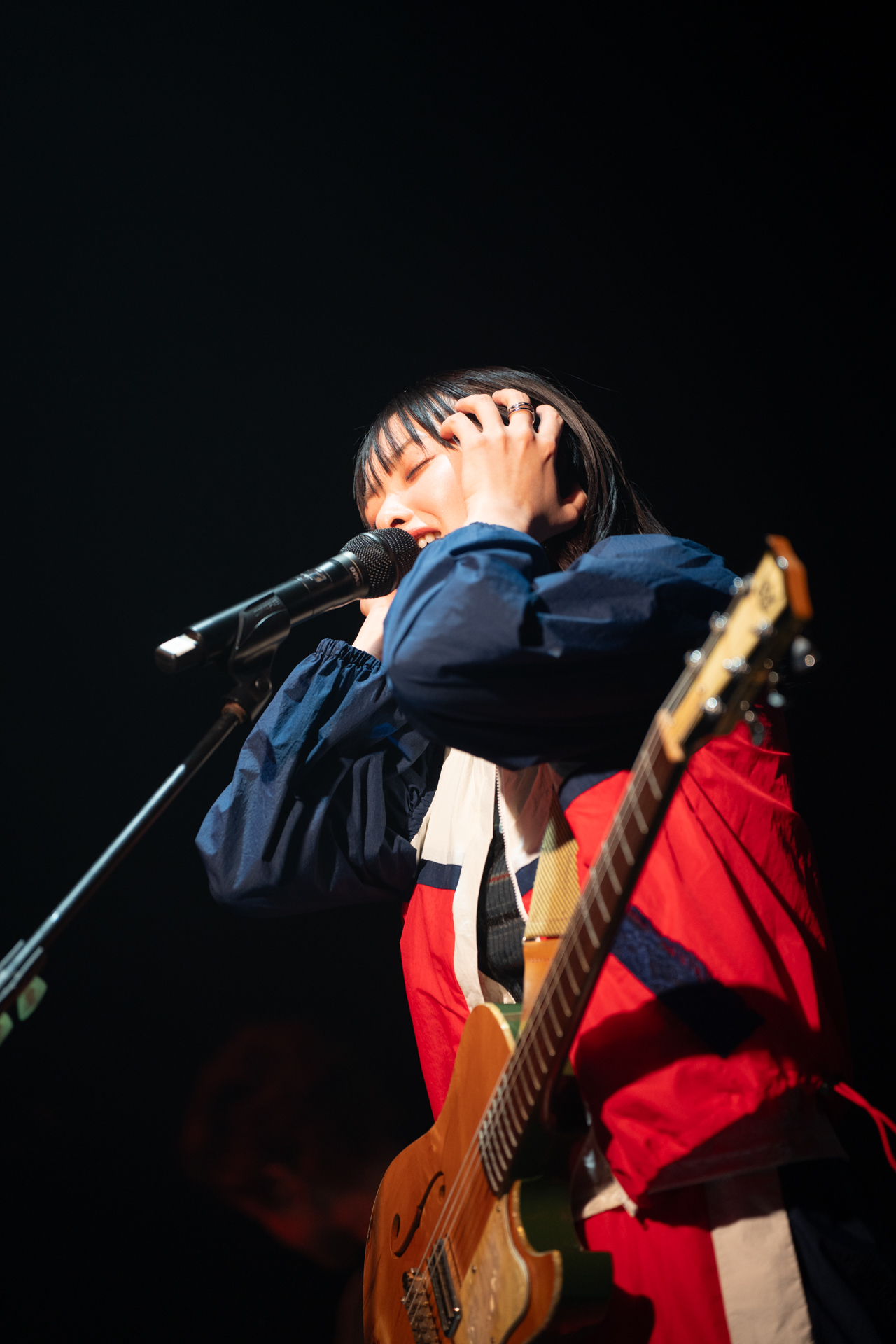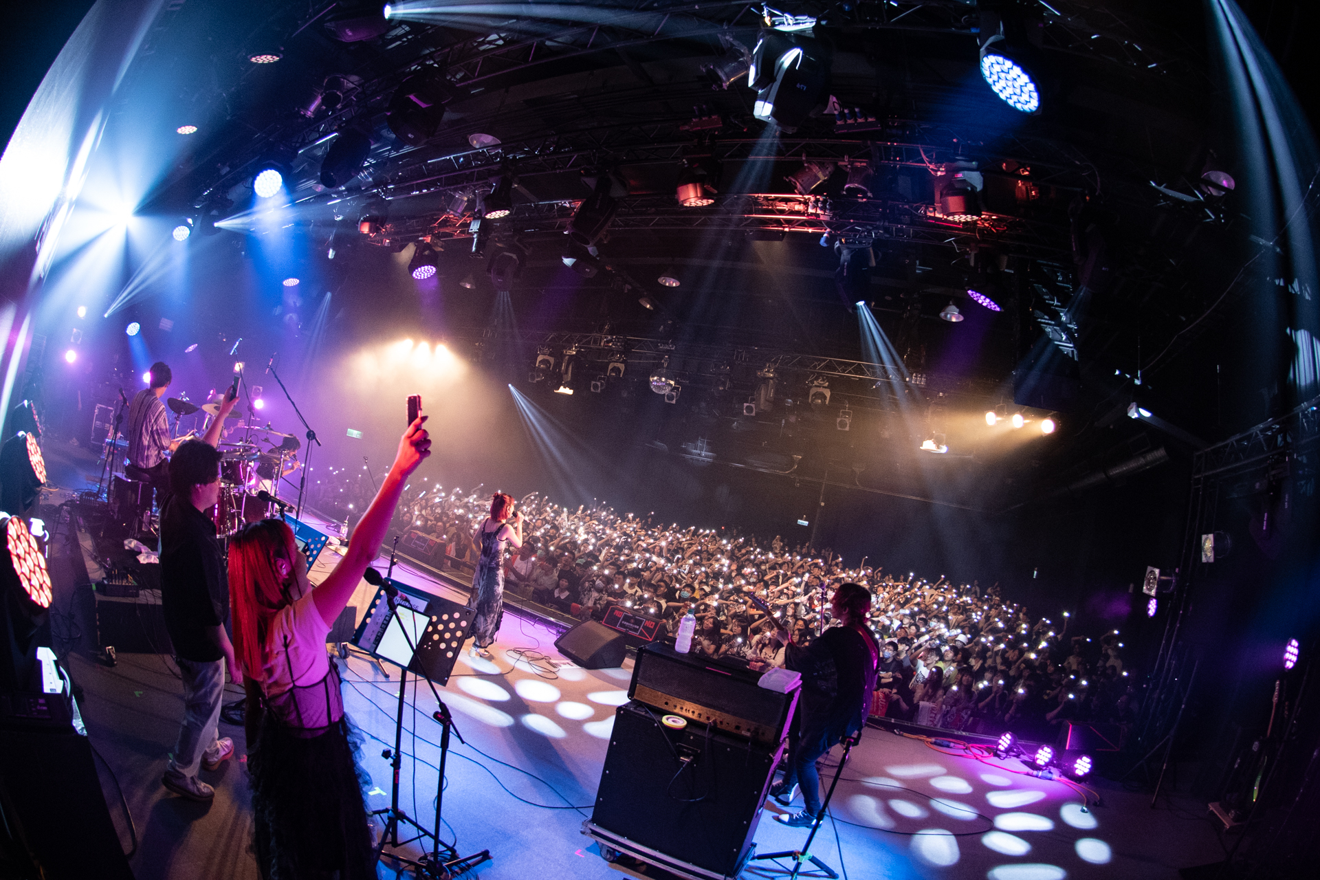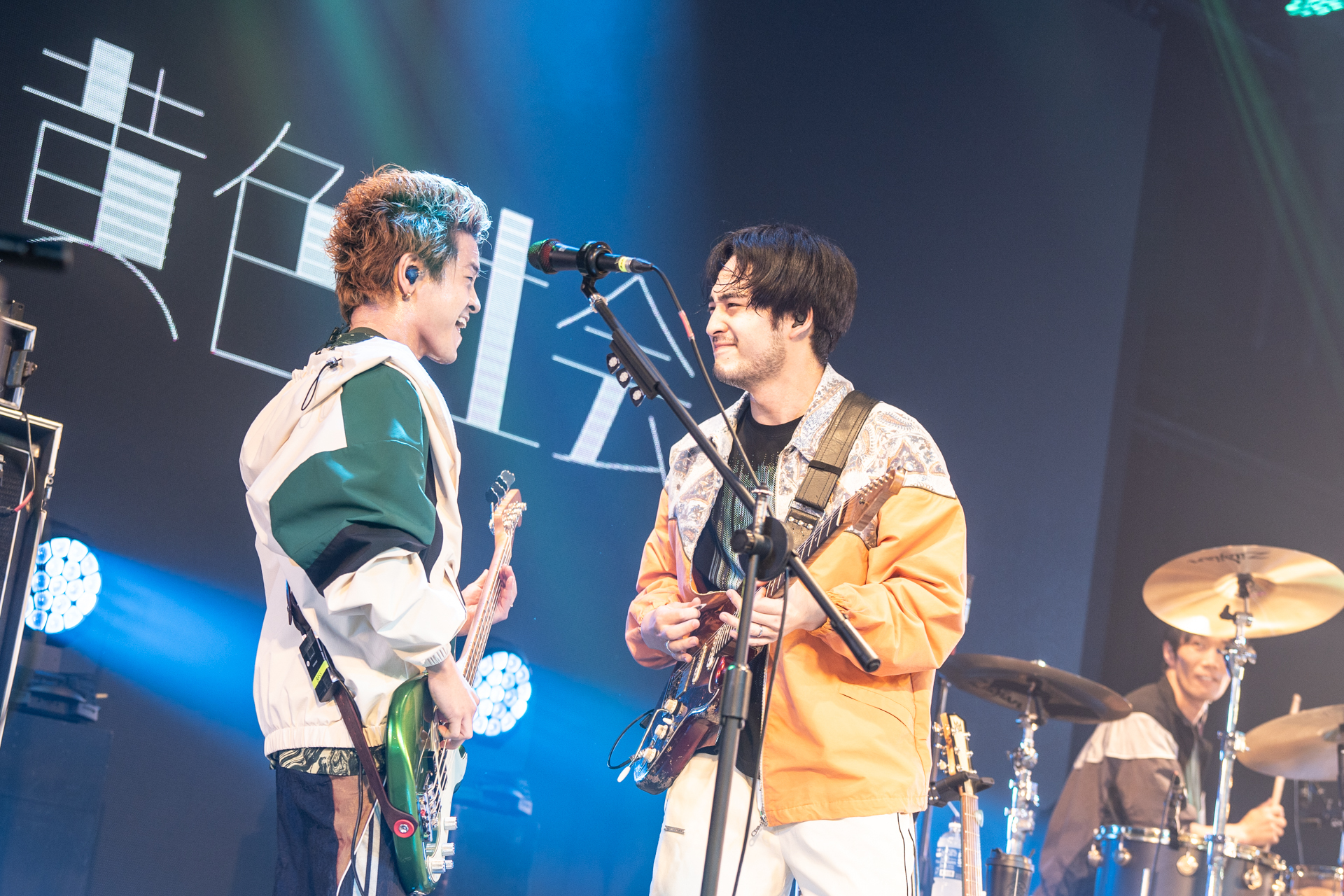 長屋と小林(Gt)が「尖叫聲ー!(盛り上がれー!)」「言葉が通じなくても音楽って本当に凄い力をもってるんだなと実感した」と観客に思いの丈をぶつけた。6曲目、大人気アニメ『薬屋のひとりごと』のオープニング曲でもある『花になって』では、アグレッシブかつスリリングなサウンドがガツンと響く。次の曲へ移ろうとした際機材トラブルに見舞われたが、その間に長屋と観客との交流が自然と生まれた。「我吃肉(私は肉を食べた)、、牛肉鍋を食べた!好吃(美味しい)!あと、タピオカも。それで、クレーンゲームでカピバラのぬいぐるみを取って。付けてこようと思ってたのにホテルに忘れた!(笑)」そんな台湾での日常が垣間見れた和やかな雰囲気の後、台湾でも多くの人に知られている「Mela!」で観客に熱いエールを送り、会場全体が大いに沸き立った。いよいよラスト、「みんな本当に会えてよかったよー!」とこの日を喜び合う一言と共に「sabotage」。明日からの希望となるような曲で本公演を締めた。最後に「また会おう」と長屋が明るく再会を約束した。