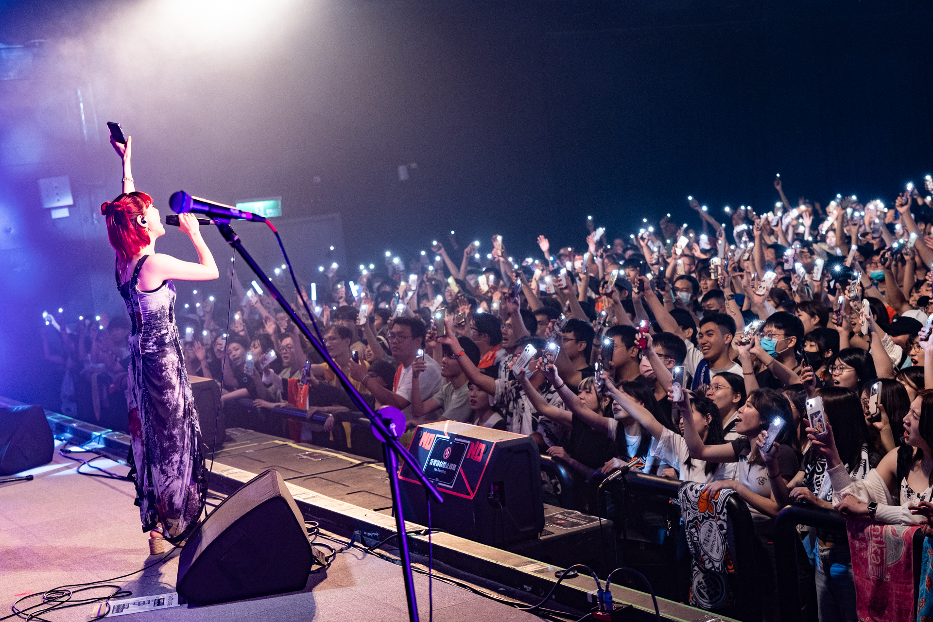 続いて登場したのはPenthouse。1曲目「…恋に落ちたら」の心地よいリズムで一気にオーディエンスを巻き込み、客席と一緒に大合唱する場面も。続いて軽快なテンポが印象的な「Jukebox driver」ではダンサブルなメロディに思わず身体を揺らす。MCでは「ごはんがおいしい」「好吃!」と、早速台湾の虜になったエピソードを。そしていよいよ3曲目は先月4月にリリースした『我愛你』!台湾のオーディエンスとコール&レスポンス、まさにこの日にぴったりの楽曲。「蜘蛛ノ糸」では艶のある2人の歌声でぐっと視線を引き寄せ、5曲目「恋標」のラスサビではスマホライトを使った演出で客席が一体となった。