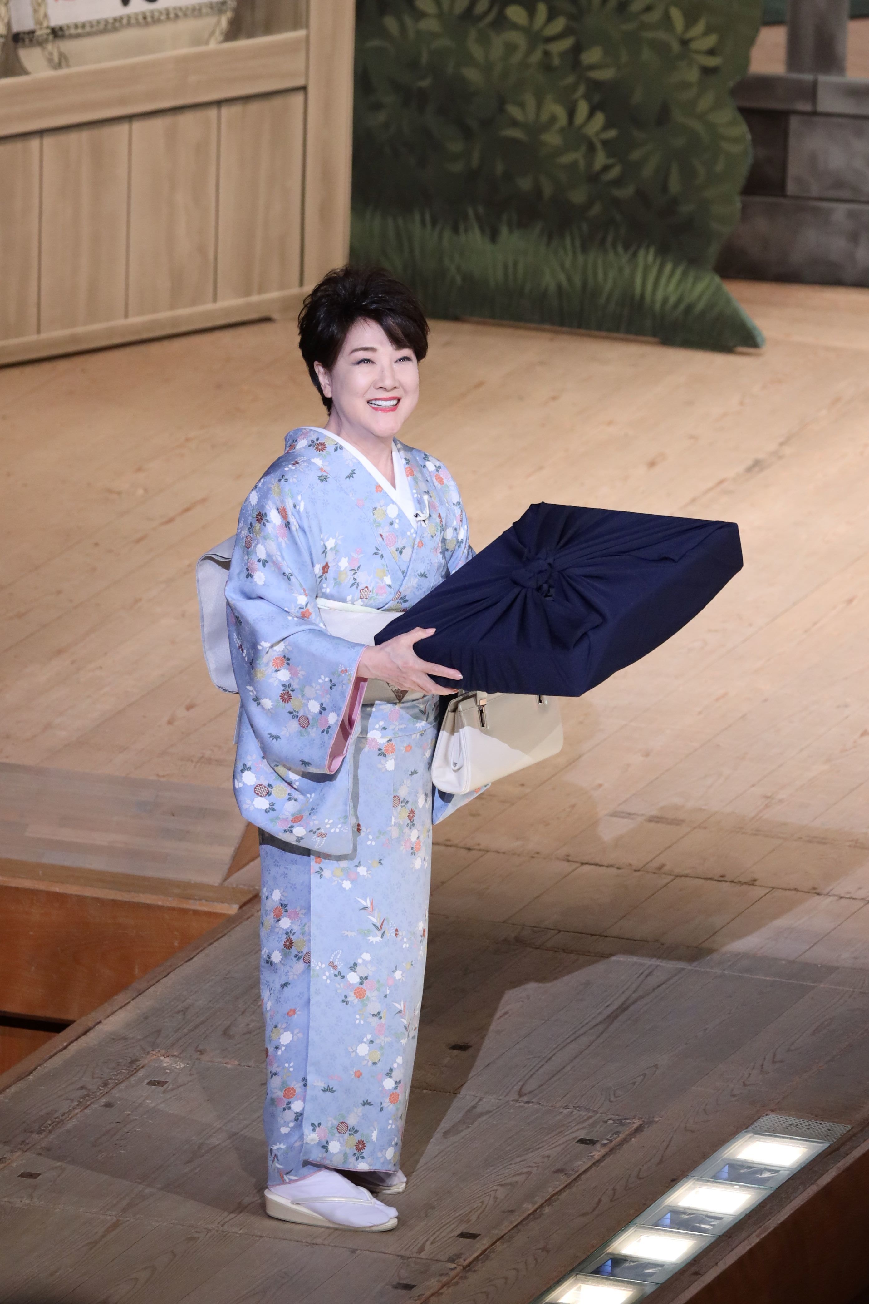 カーテンコールでは出演者一同が舞台に登場し、松竹新喜劇の劇団員とゲストの川中美幸が息の合った掛け合いを披露。川中美幸の持ち前のトーク力で劇場を笑いの渦に巻き込みました。また川中美幸が、「二輪草」や、新曲「人生日和」なども歌い、大盛り上がりで、初日の幕がおりました。