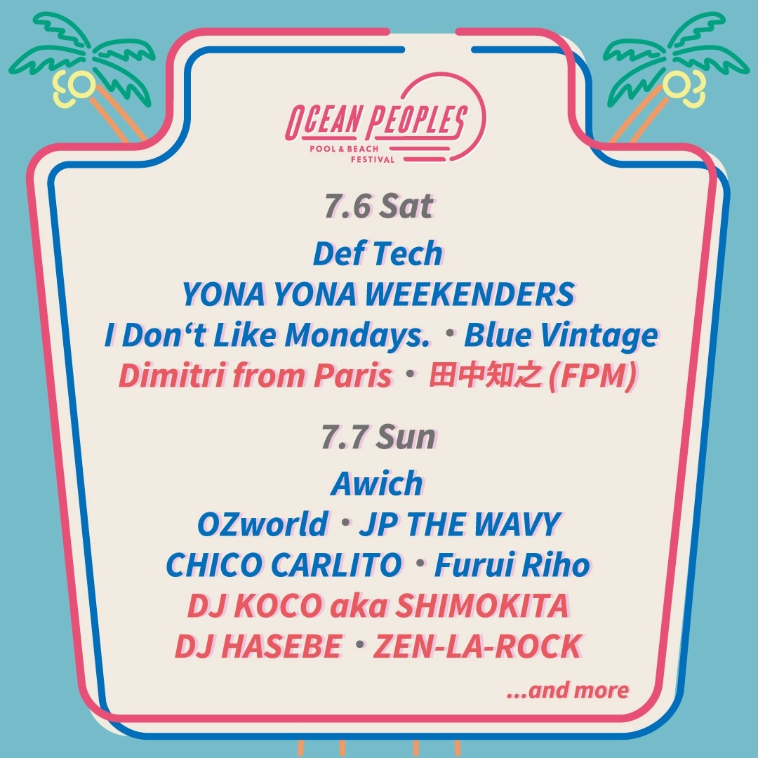 2024年7月6日(土)・7日(日)の2日間、稲毛海浜公園でプールでグッドミュージックが楽しめるプール&ビーチフェスティバル『OCEAN PEOPLES’24』の第二弾出演アーティスト・5組が発表された。