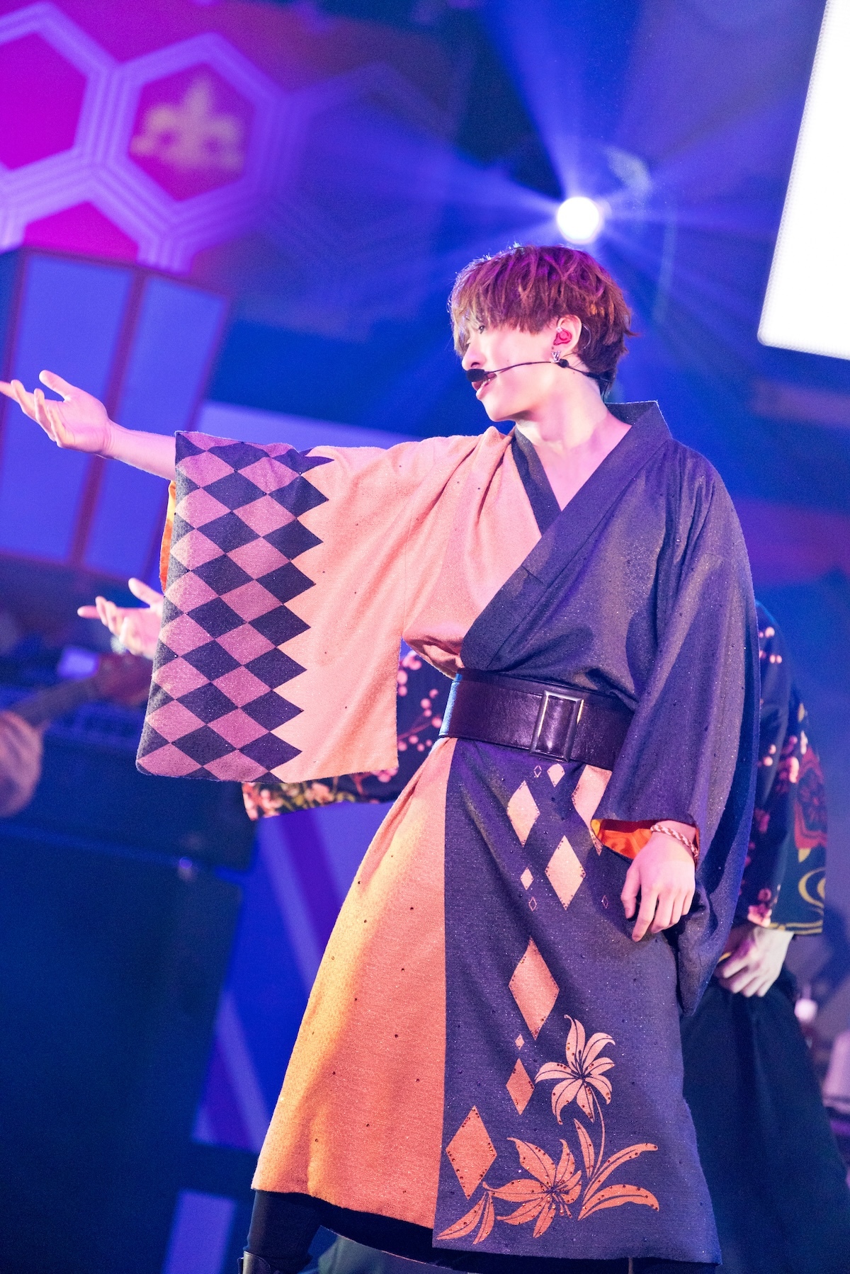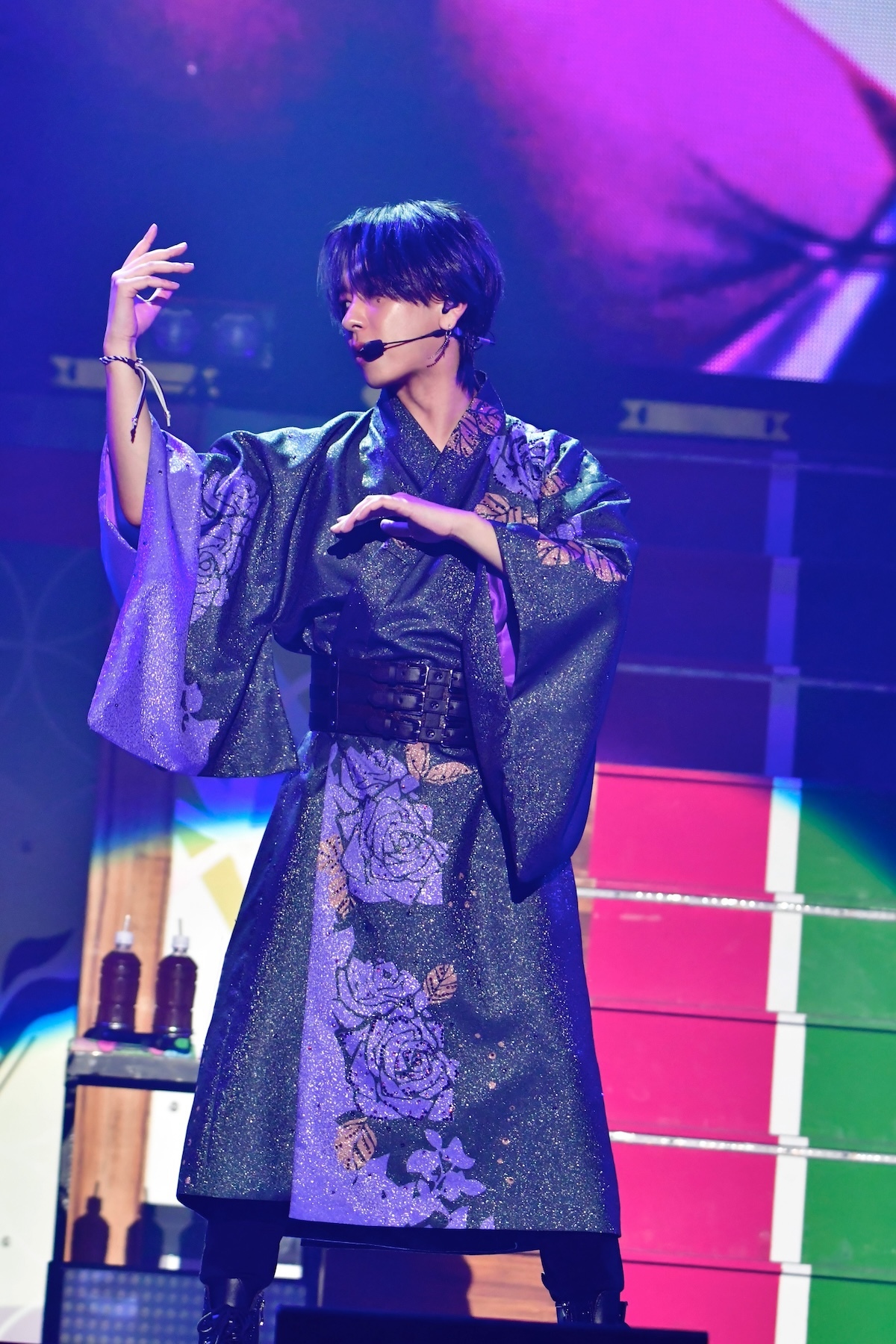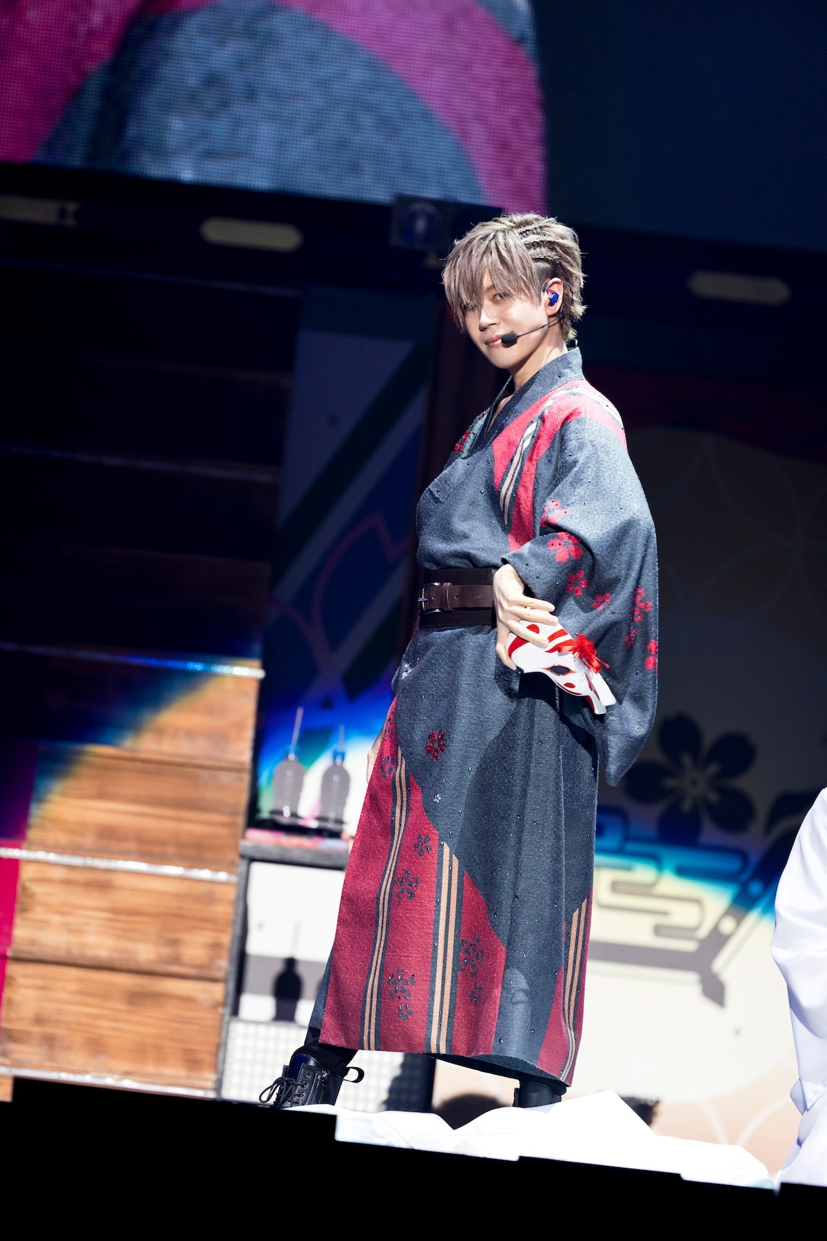 1曲目の「SAKURA FUBUKI」で、すでにテンションは爆上がり! 花火などの特効も炸裂し、空気が一変。2曲目の「ミダリニハルイロ」では、4人が軽やかなダンスで魅了。その後も「貴方と云ふ花」「恋色花火」など、春らしい楽曲を披露していく。春ソング中心のセットリストが心地良い。「恋色花火」では、4人が客席に囲まれたセンターステージに移動し、「俺達の名前を呼んでくれ~!」と、観客を煽った。以降も「グッド・バイ」「花魁俺嵐コンフュージョン」などの人気曲を連発。前半から激アツのパフォーマンスとなった。7曲目の「アワ・ダンサー」ではメンバーがそれぞれトロッコ車に乗り込み、左右から2人ずつ発進。アリーナの通路を1周するというファンサを展開。全方位のファンに手を振りながら、アゲアゲチューンで盛り上げた。
