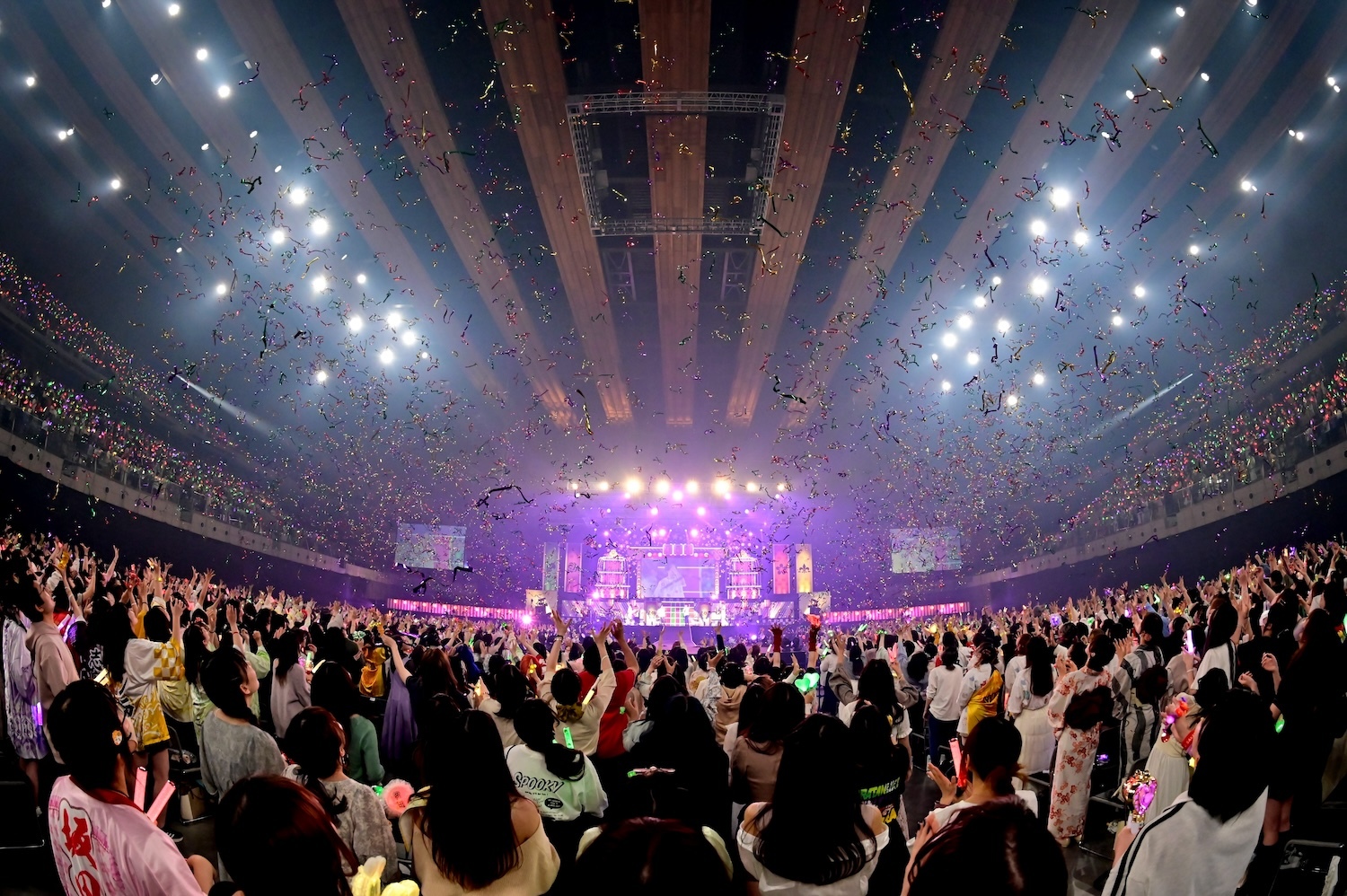 ライブが始まる前から会場周辺は完全にお祭りモード。コラボフードの販売やメンバーへのお願いを書き込む絵馬のブースなどが設置され、華やいだ雰囲気だ。crewも推しの缶バッジなどで飾った“痛バッグ”や、メンバーカラーをフィーチャーしたファッションで推し愛をアピール。ライブへの期待感をうかがわせた。