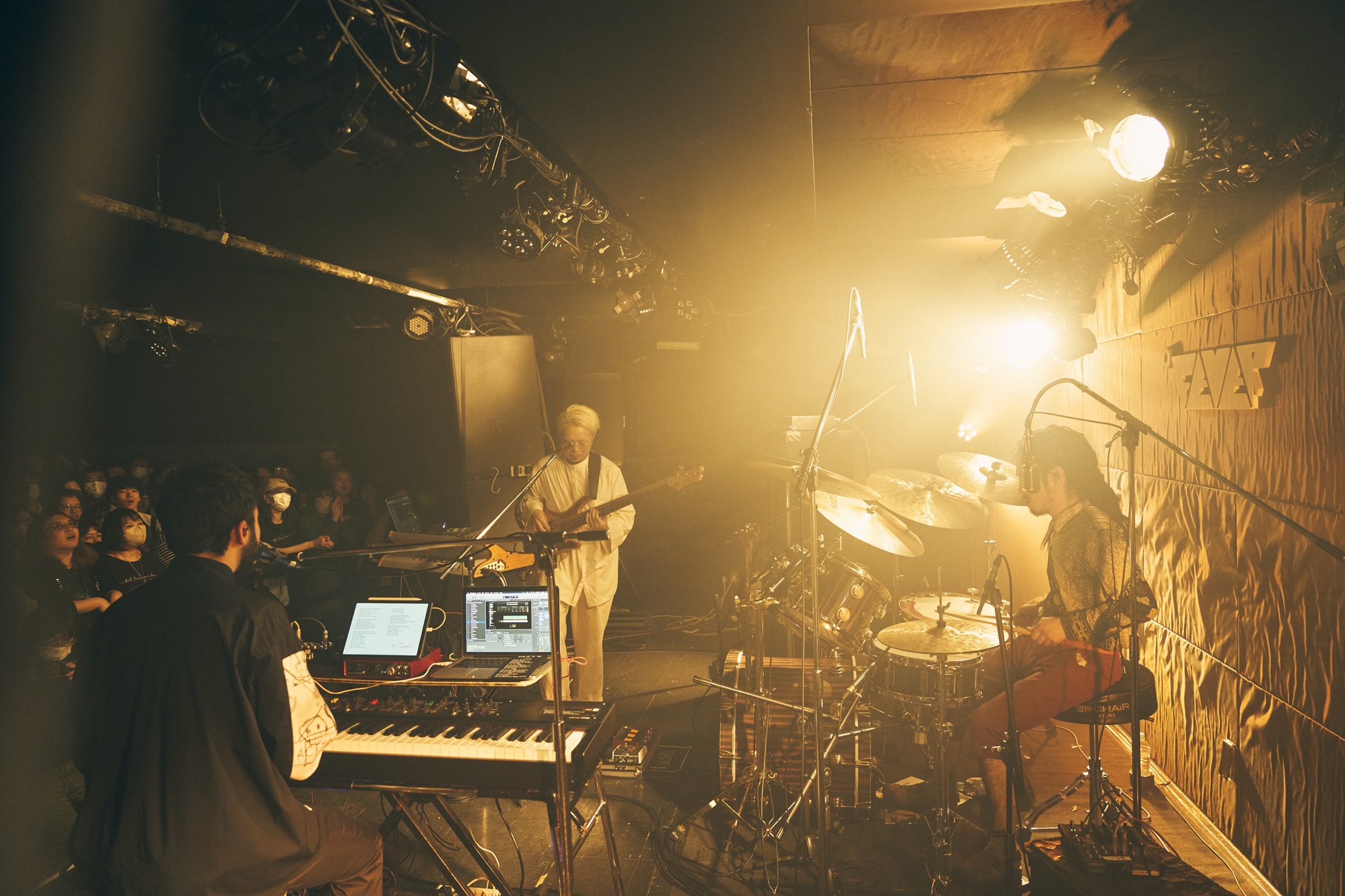 シンセベースと5弦ベースの併用で抜群の包容力を生み出した「colors」、滑らかなスライドの唸りが心地よい未発表曲「In my head」、絶妙な音符の伸ばし方や切り方で耳を惹く「Return to Dust」、Jackson(Dr&Cho)が紡ぐキレのあるビートとともにファンキーな躍動を見せた「City」と、Tsuruの多彩なプレイにも改めて感服。その姿を目に焼き付けようと、今まで以上に視線を送っていたのは、きっと自分だけではないだろう。