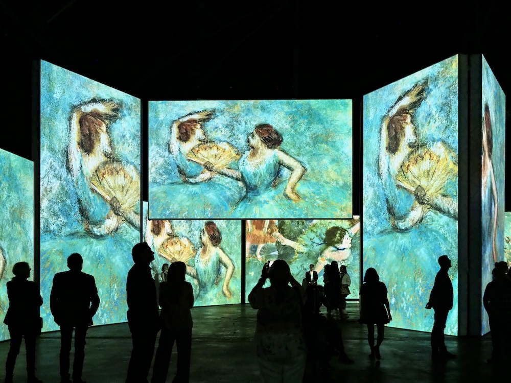 会場では、クロード・モネ、カミーユ・ピサロ、ピエール=オーギュスト・ルノワール、ポール・セザンヌ、エドガー・ドガらの大胆な筆遣いを巨大なスクリーンにて上映。次々に流れるサウンドに身を委ねながら、光、色、音、香りの中で、印象派の世界の激しさと美しさを体験することが可能だ。