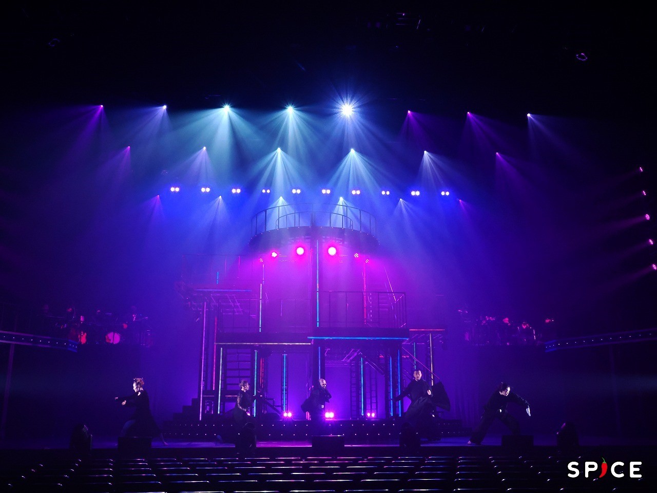 ショーは休憩なしの約100分。開幕までの客席は街の雑踏の音が流れている。開演し目の前に大きく広がったのは渋谷の風景。劇場であるシアターオーブがあるエリアだ。改めて、この場所と外に広がる世界がひと続きであることを感じる演出でもある。生バンドの演奏と共に、出演者全員による「Seasons of Love」(『RENT』より)でショーがスタートした。