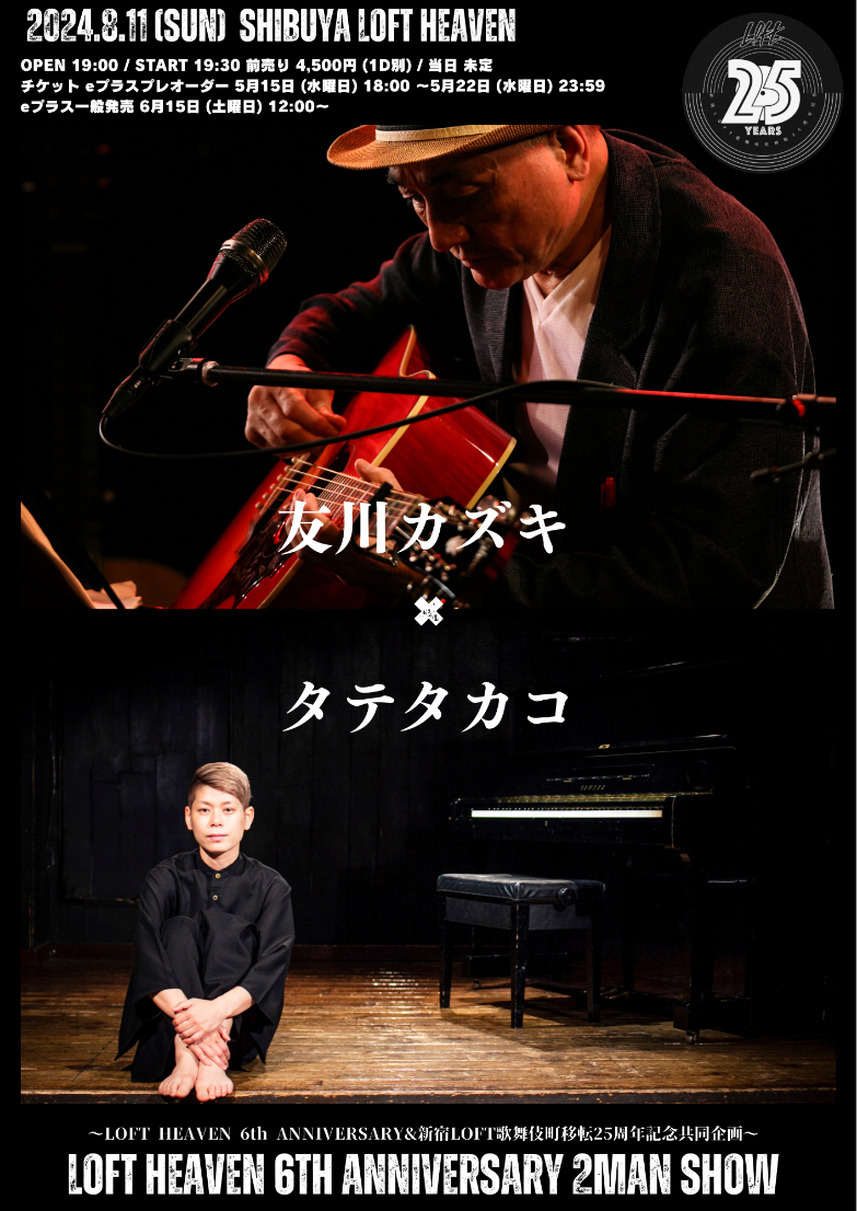 友川カズキ×タテタカコ LOFT HEAVEN 6th ANNIVERSARY&新宿LOFT歌舞伎町移転25周年記念共同企画『LOFT HEAVEN 6TH ANNIVERSARY 2MAN SHOW』