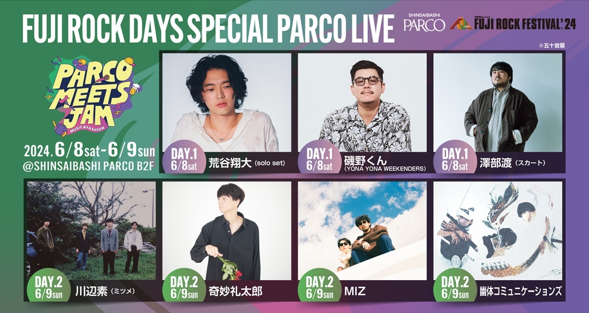 大阪では6月8日(土)、9日(日)に、心斎橋PARCO地下2Fでスペシャルライブを実施。『フジロック』にゆかりのあるアーティストによるスペシャルライブが入場無料で楽しむことができる。